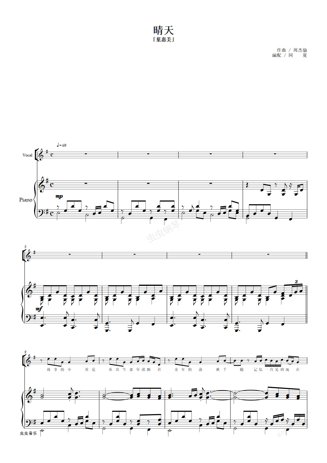 钢琴谱:晴天 - 原版弹唱系列 - 周杰伦 - 叶惠美
