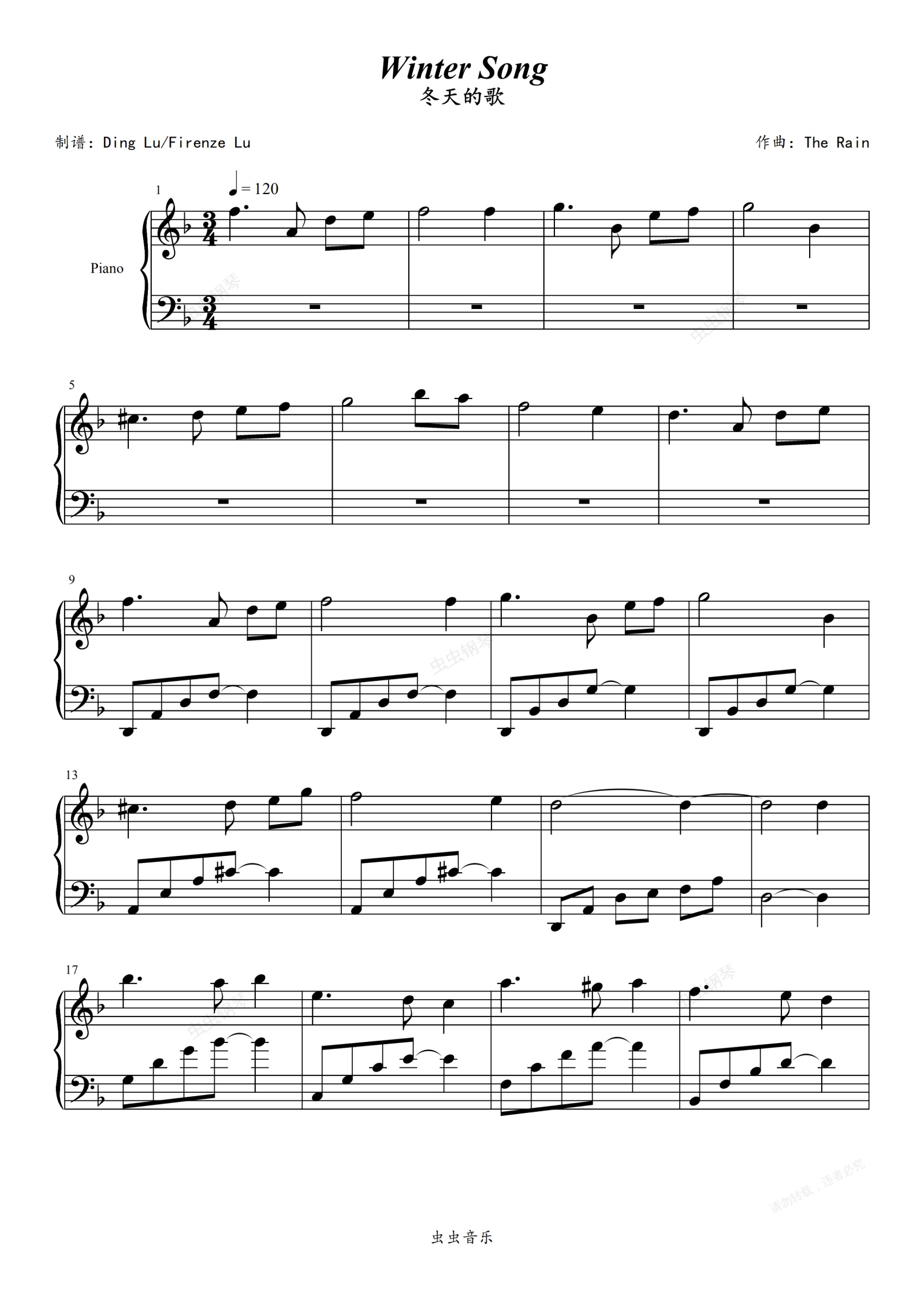 钢琴谱:Winter Song (冬天的歌)