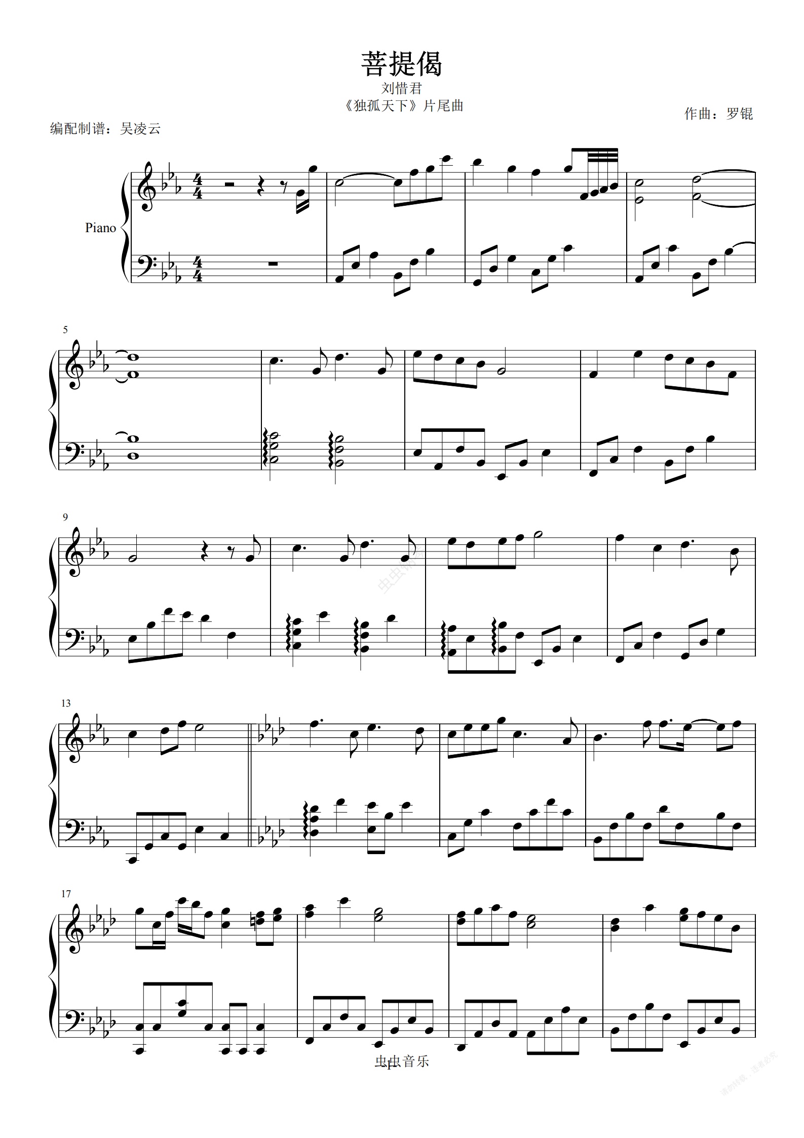钢琴谱:菩提偈 刘惜君 《独孤天下》片尾曲 吴凌云钢琴版制谱
