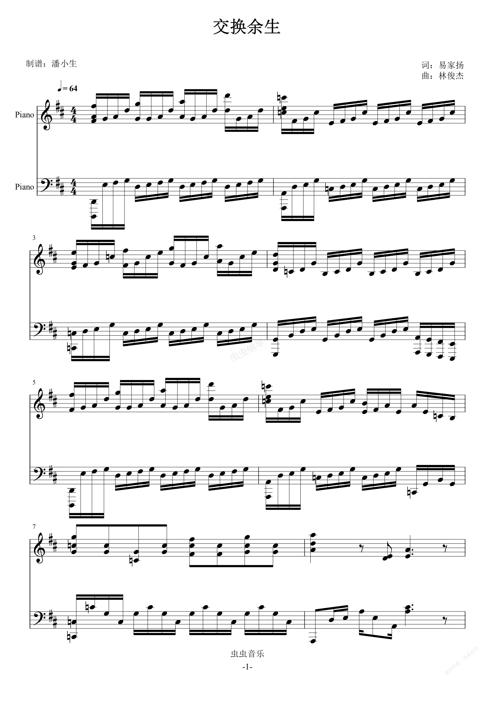 钢琴谱:交换余生 好听版 D调 林俊杰 2020新单曲