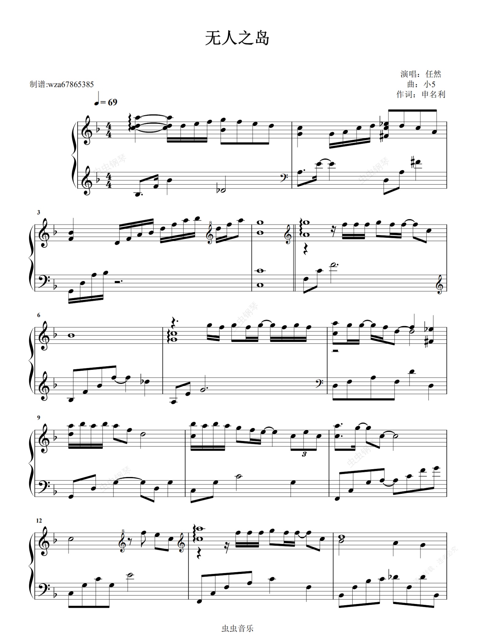 钢琴谱:无人之岛