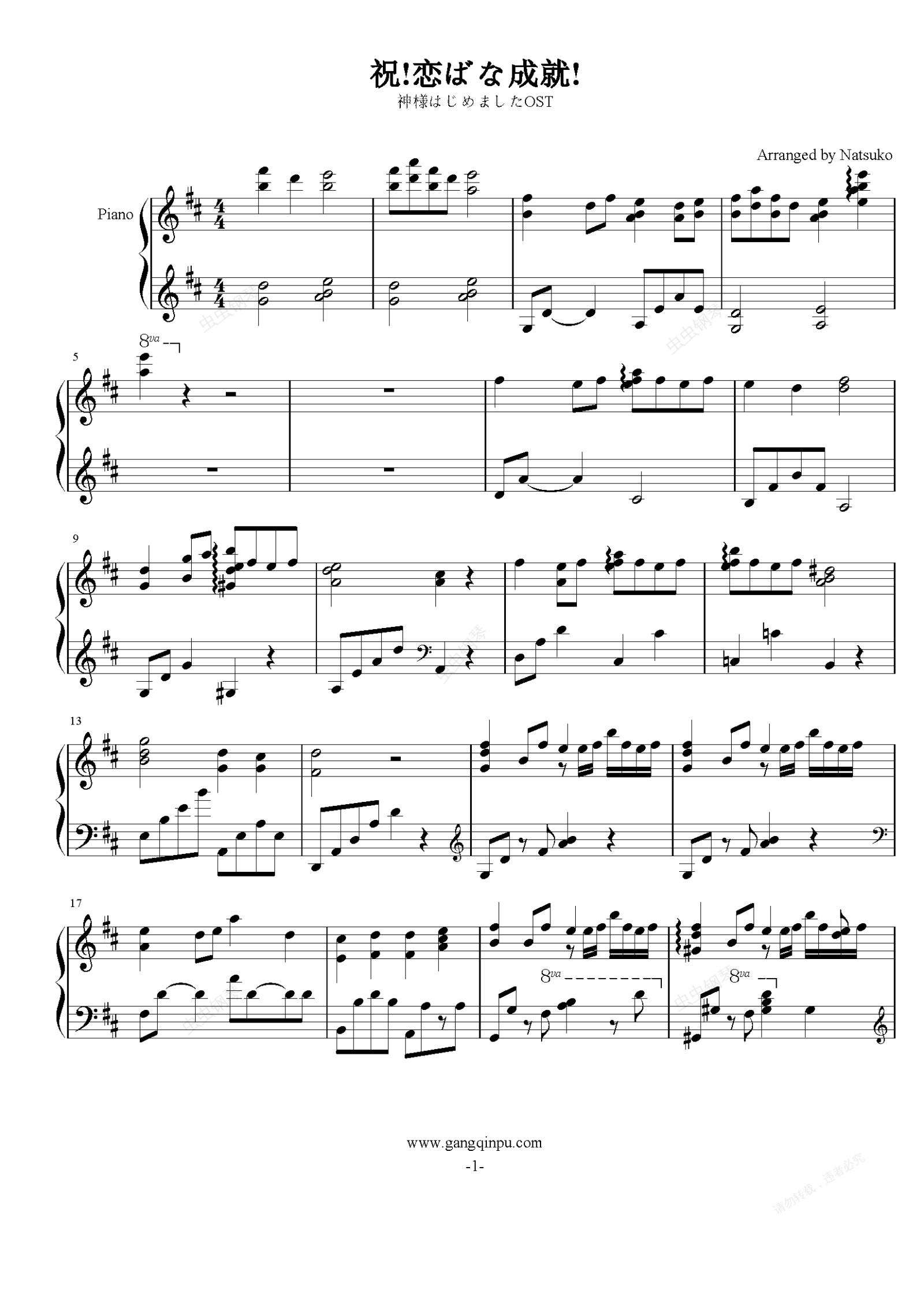 钢琴谱:元气少女缘结神OST-祝!恋ばな成就!-