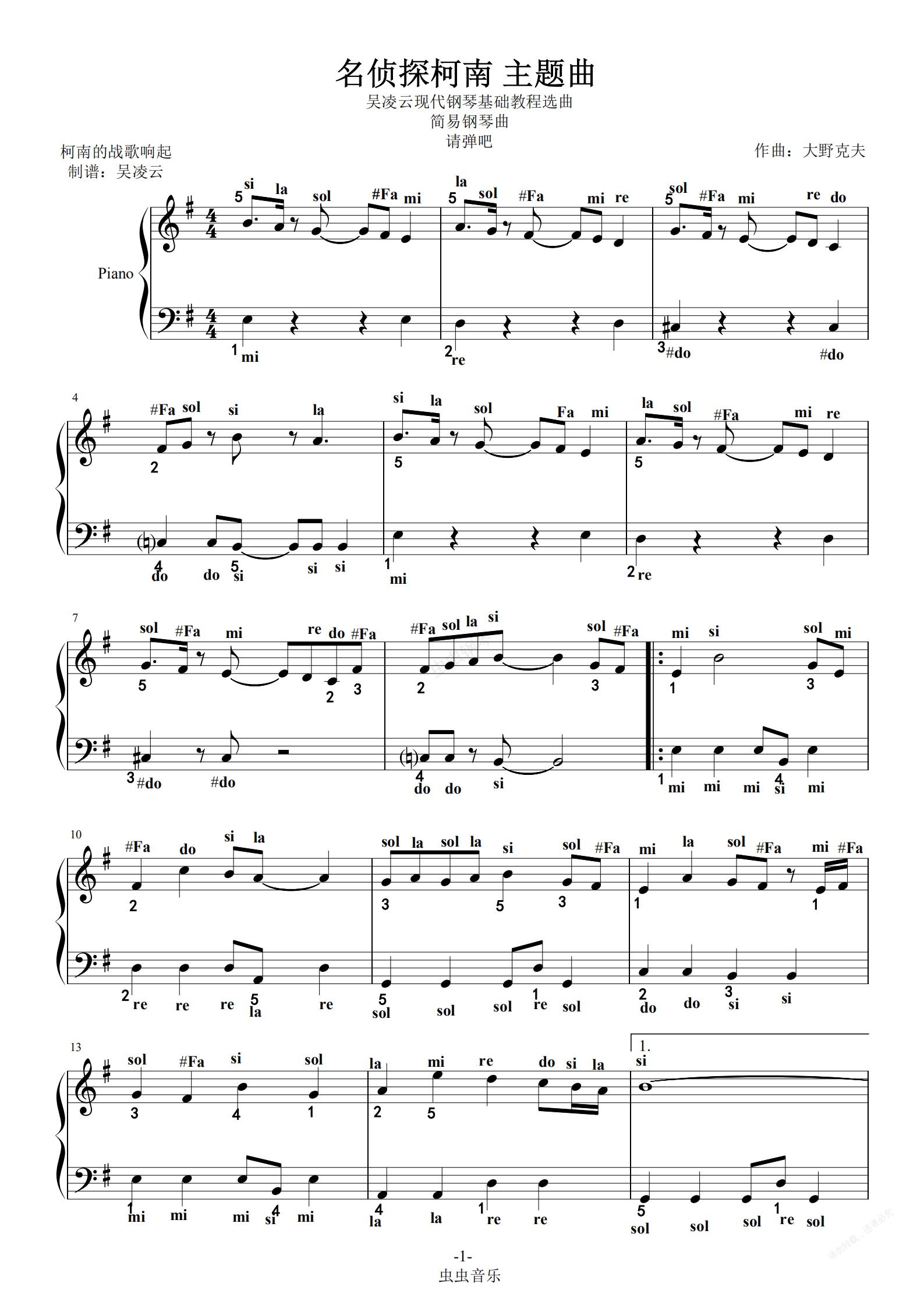 钢琴谱:名侦探柯南 主题曲 初学者易上手注音名标指法 吴凌云现代钢琴基础教程选曲
