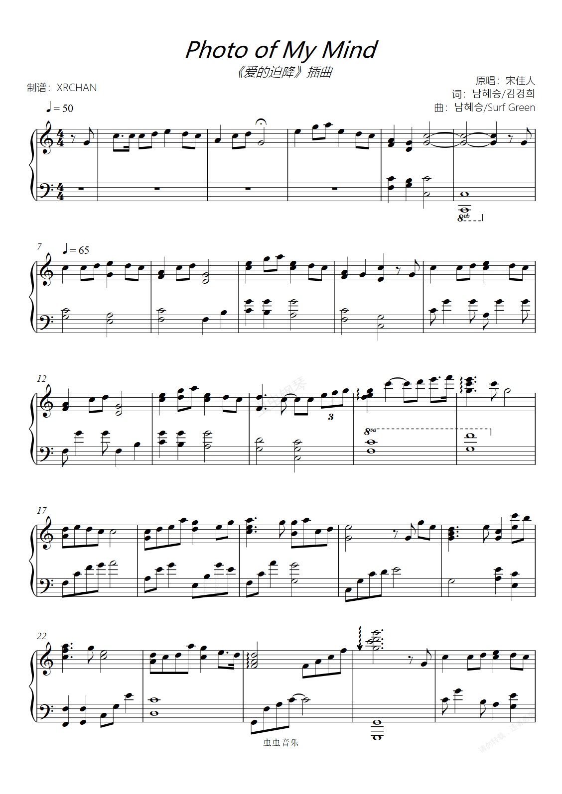 钢琴谱:Photo of My Mind 《爱的迫降》插曲