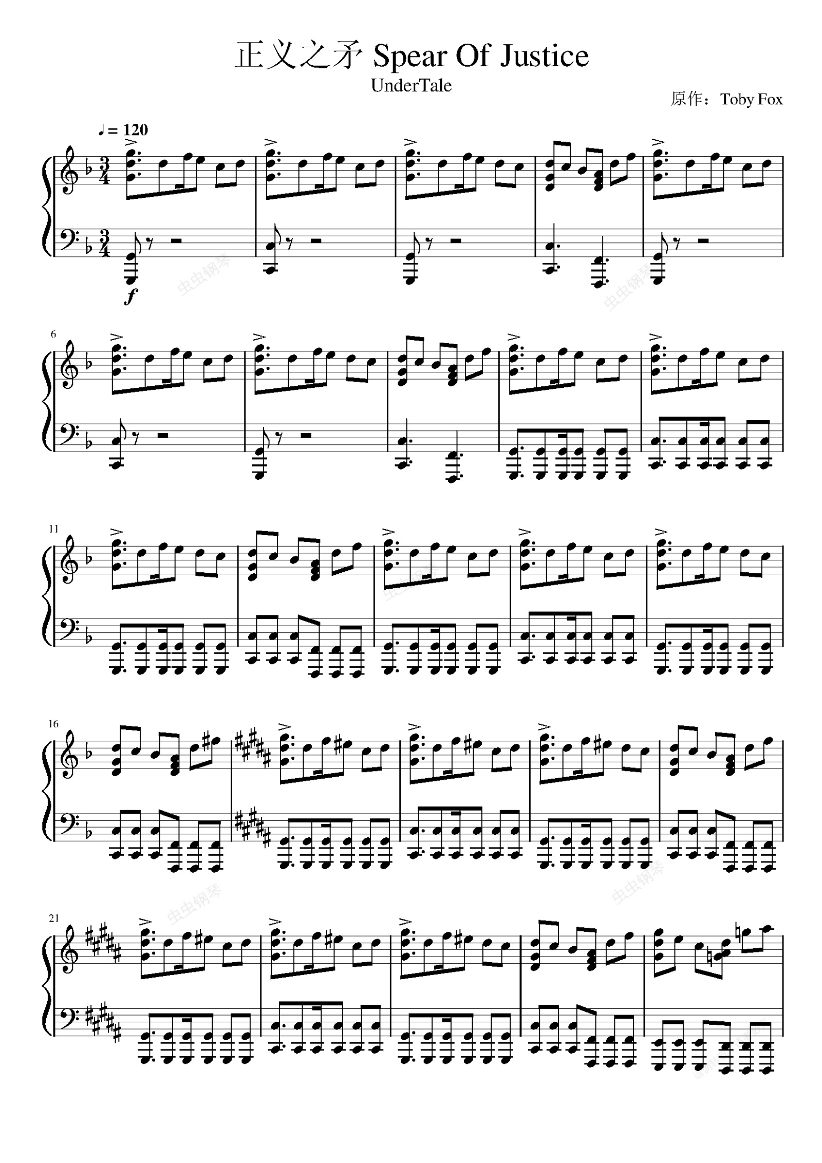 钢琴谱:正义之矛 Spear Of Justice-Undertale