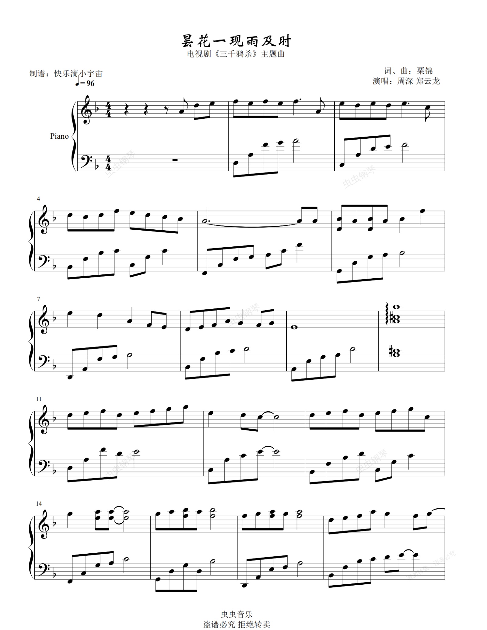 钢琴谱:昙花一现雨及时(简洁梦幻版)—周深、郑云龙