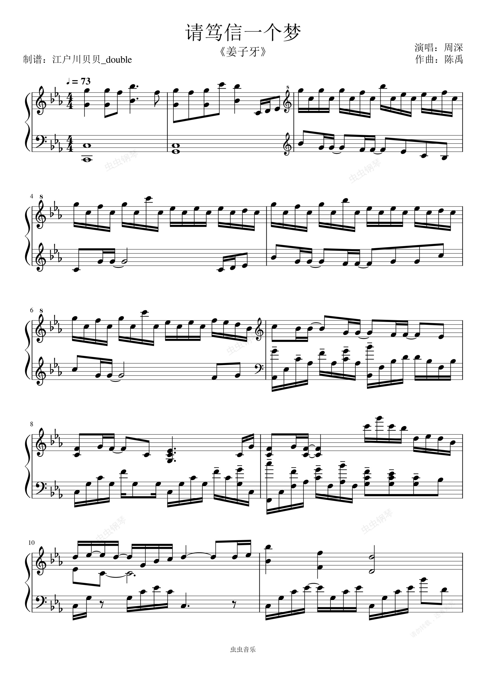 钢琴谱:电影《姜子牙》片尾曲《请笃信一个梦》(周深)