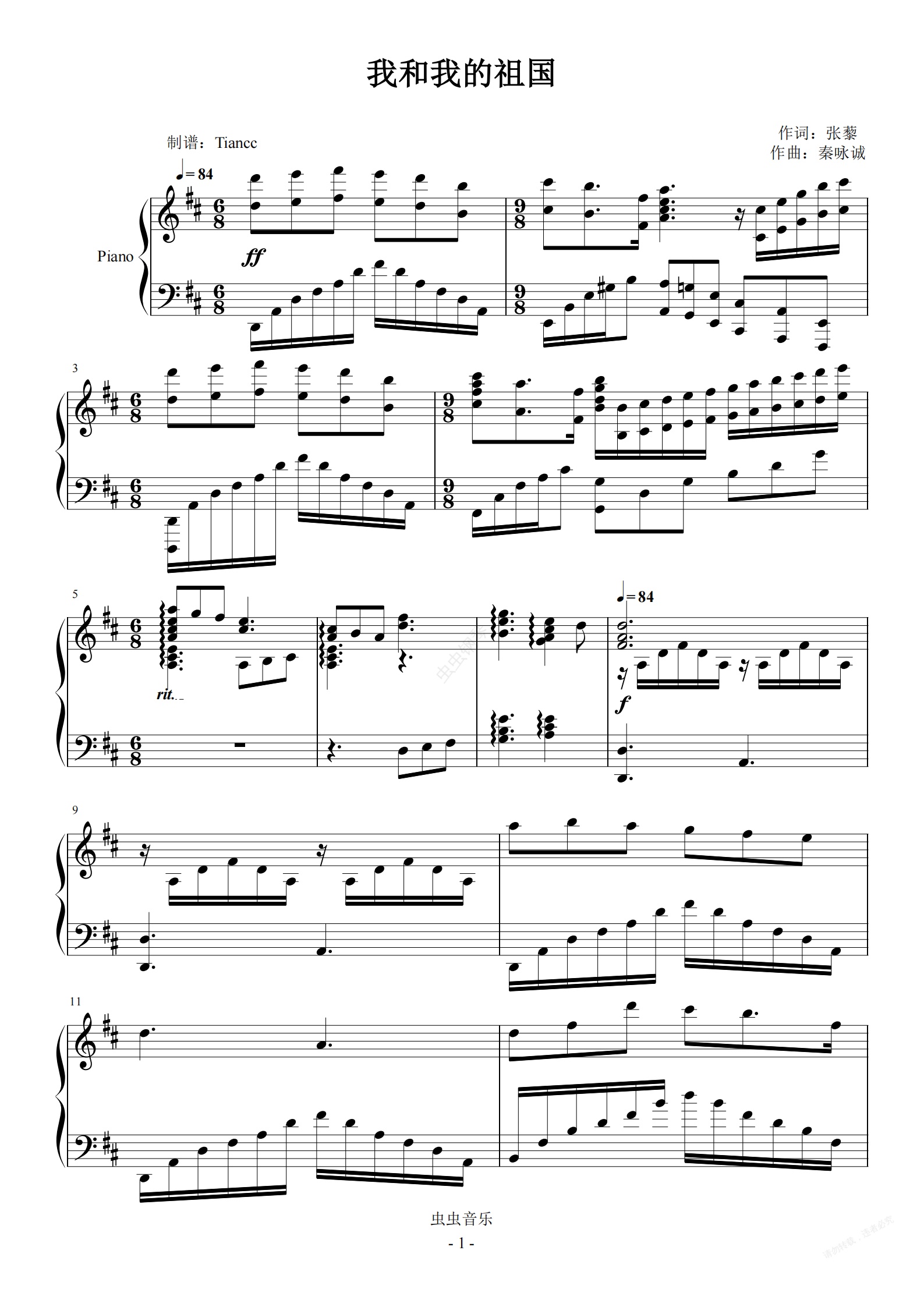 钢琴谱:《我和我的祖国》大气恢弘演奏版,299难度