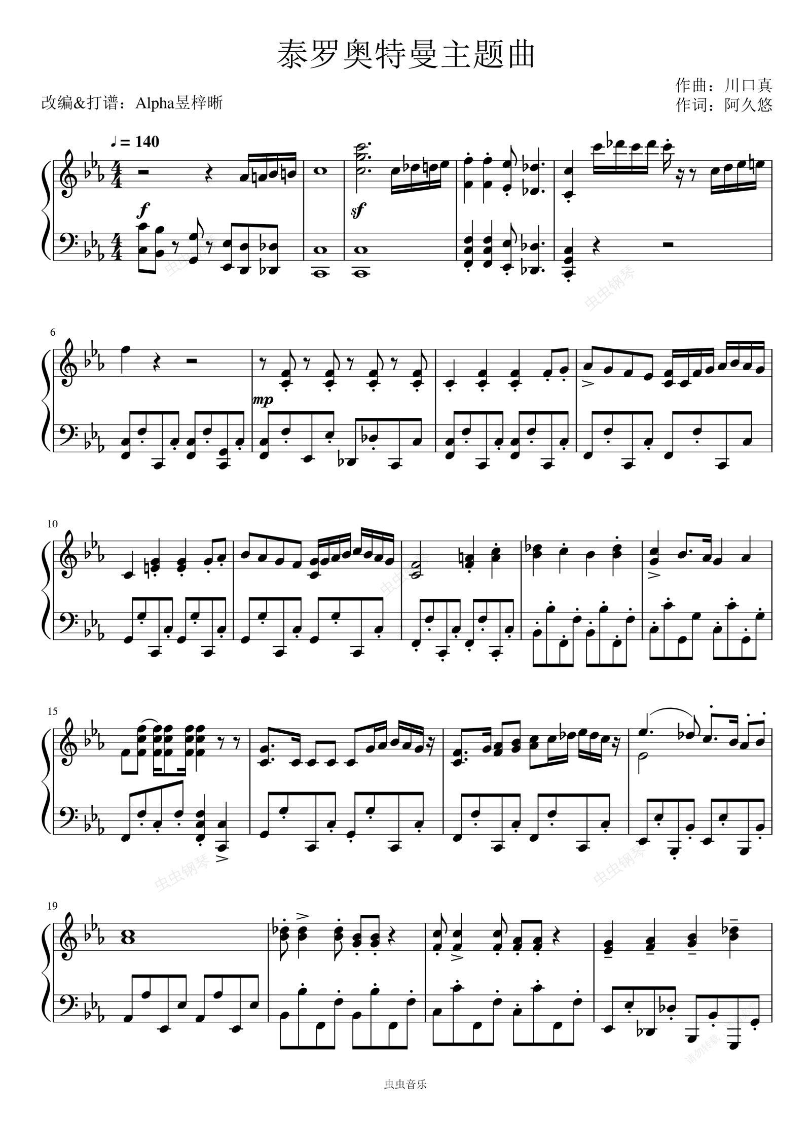 钢琴谱:泰罗奥特曼主题曲钢琴版