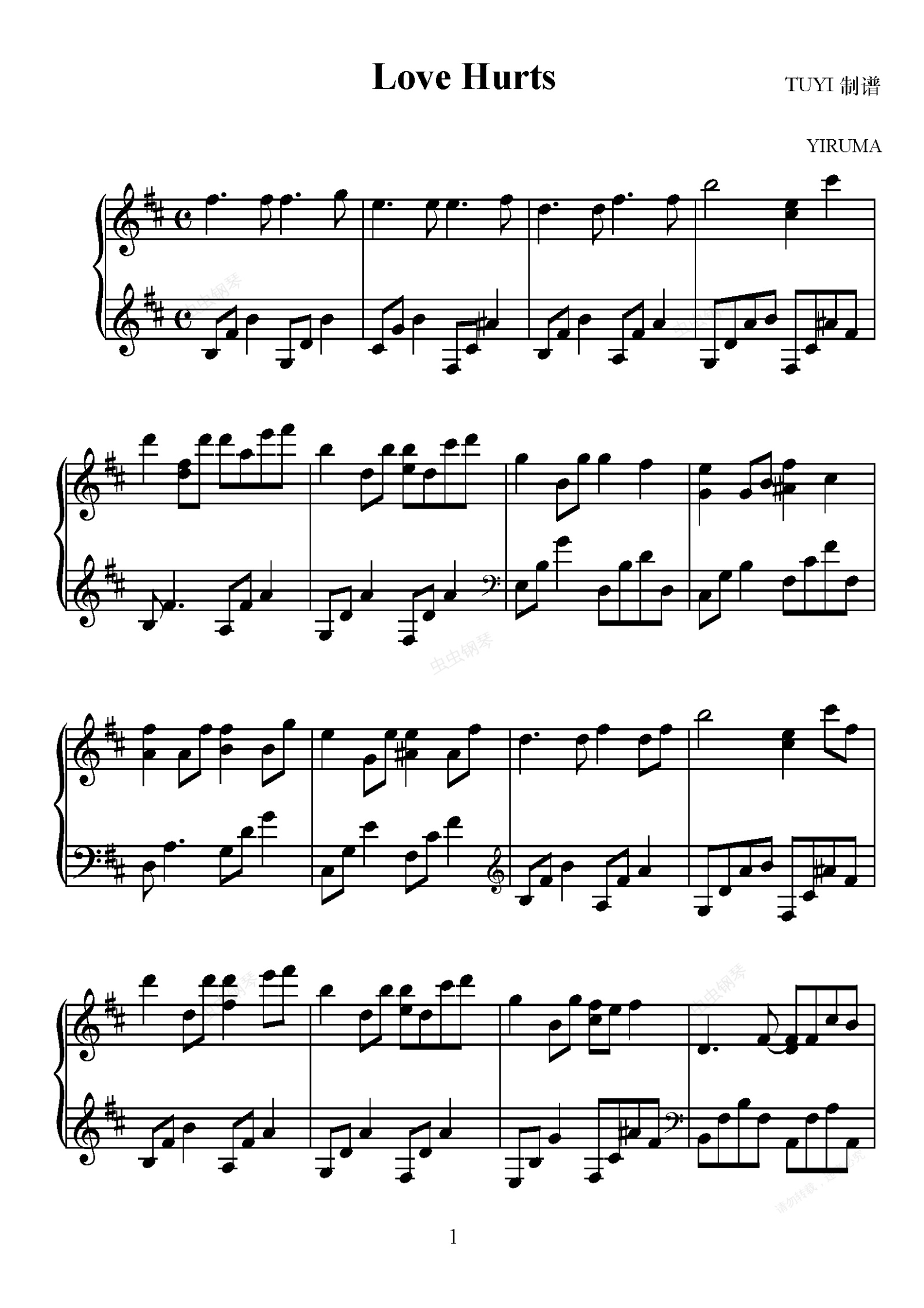 钢琴谱:Love Hurts【原版易弹】- Yiruma 李闰珉
