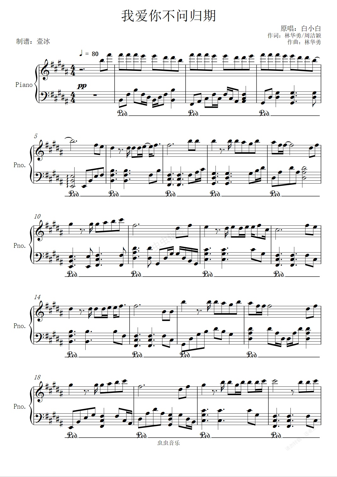 钢琴谱:我爱你不问归期//白小白-壹冰钢琴版