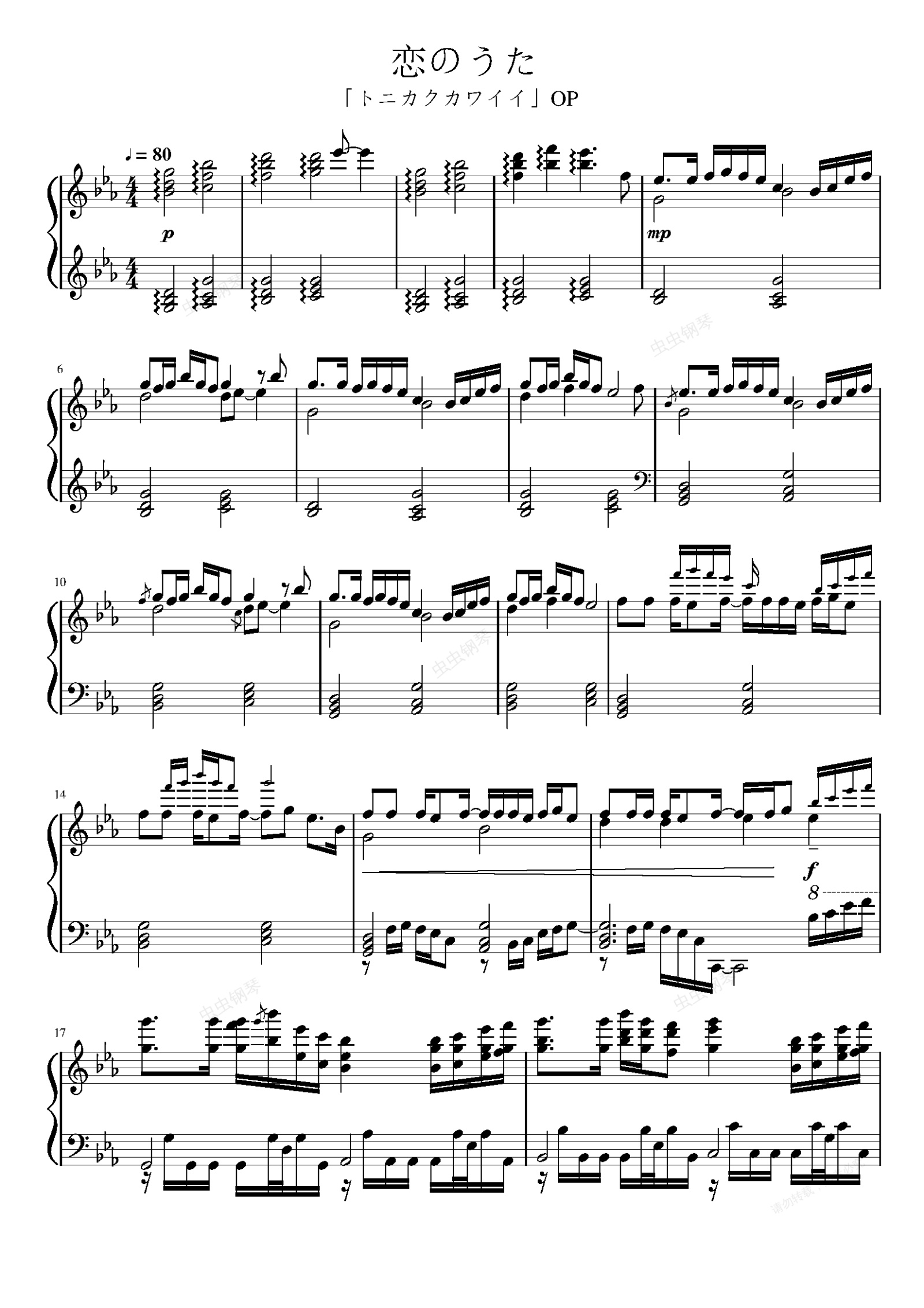 钢琴谱:恋のうた《总之就是非常可爱》OP