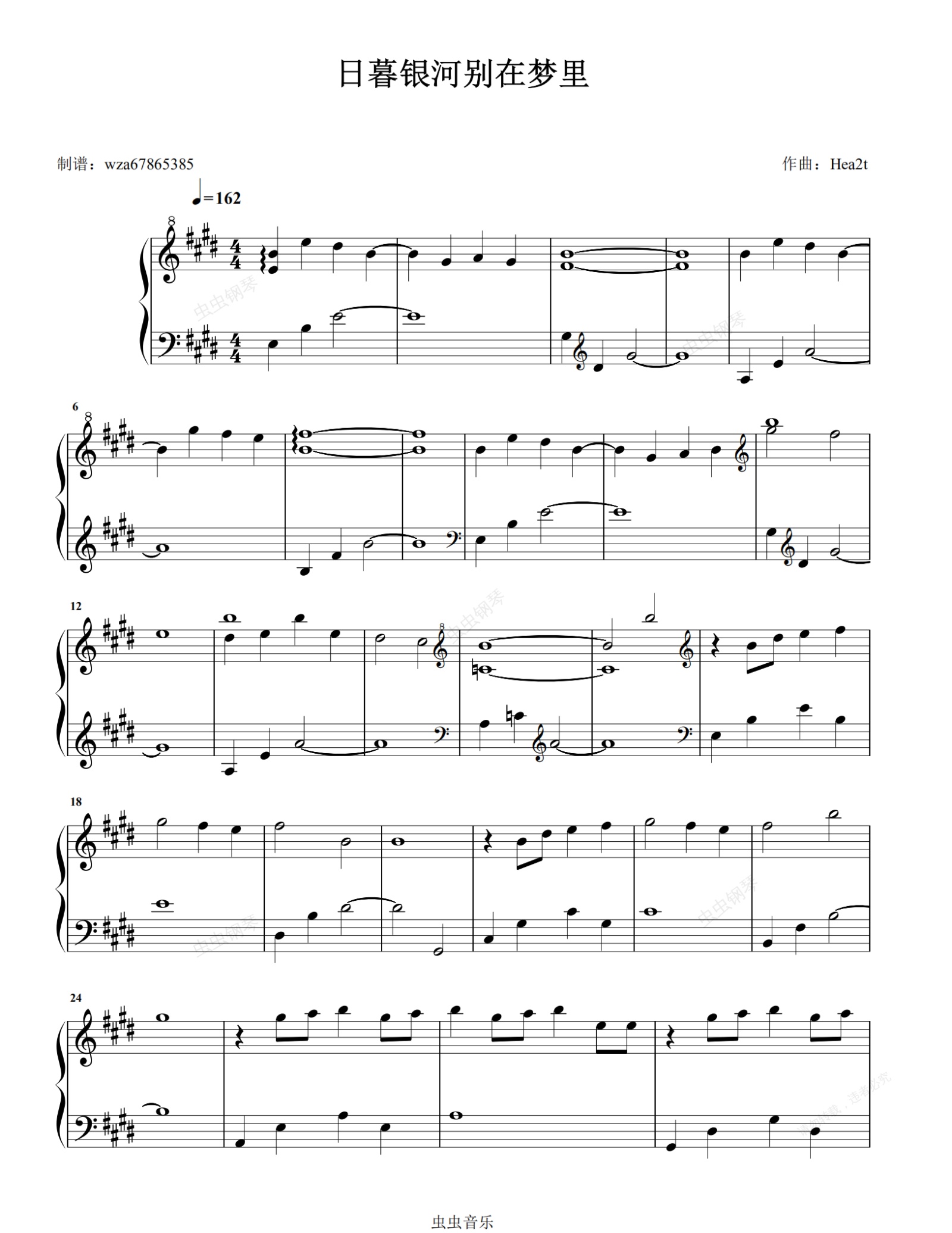 钢琴谱:日暮银河别在梦里