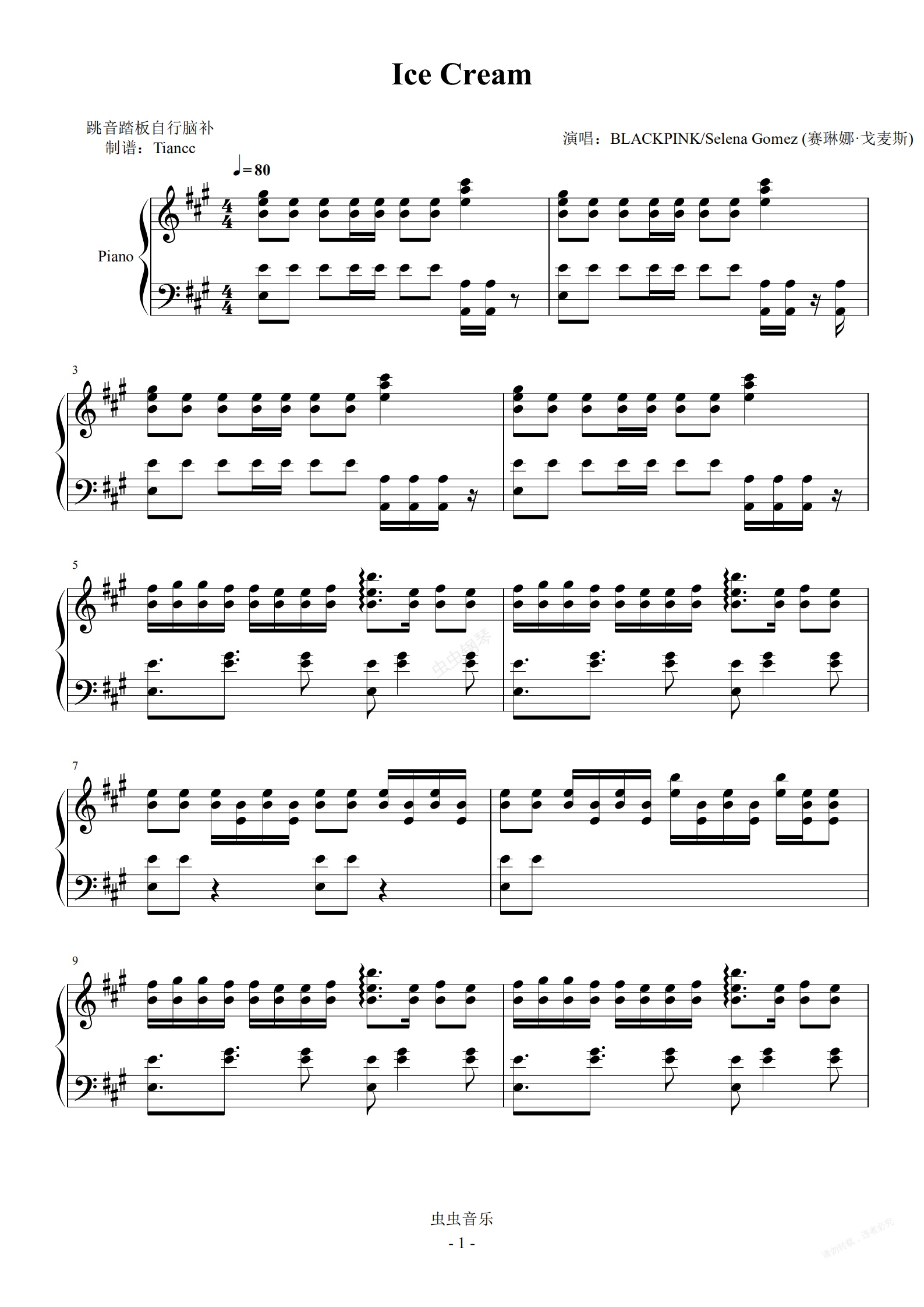 钢琴谱:BLACKPINK《Ice Cream》完美可弹谱