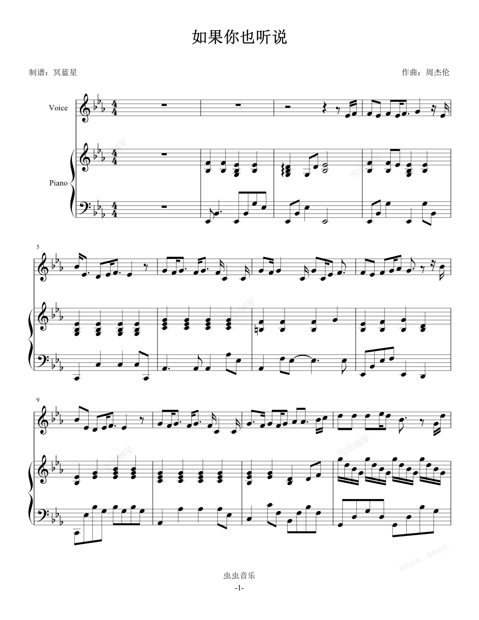 钢琴谱:张惠妹-如果你也听说 伴奏谱(男生版)