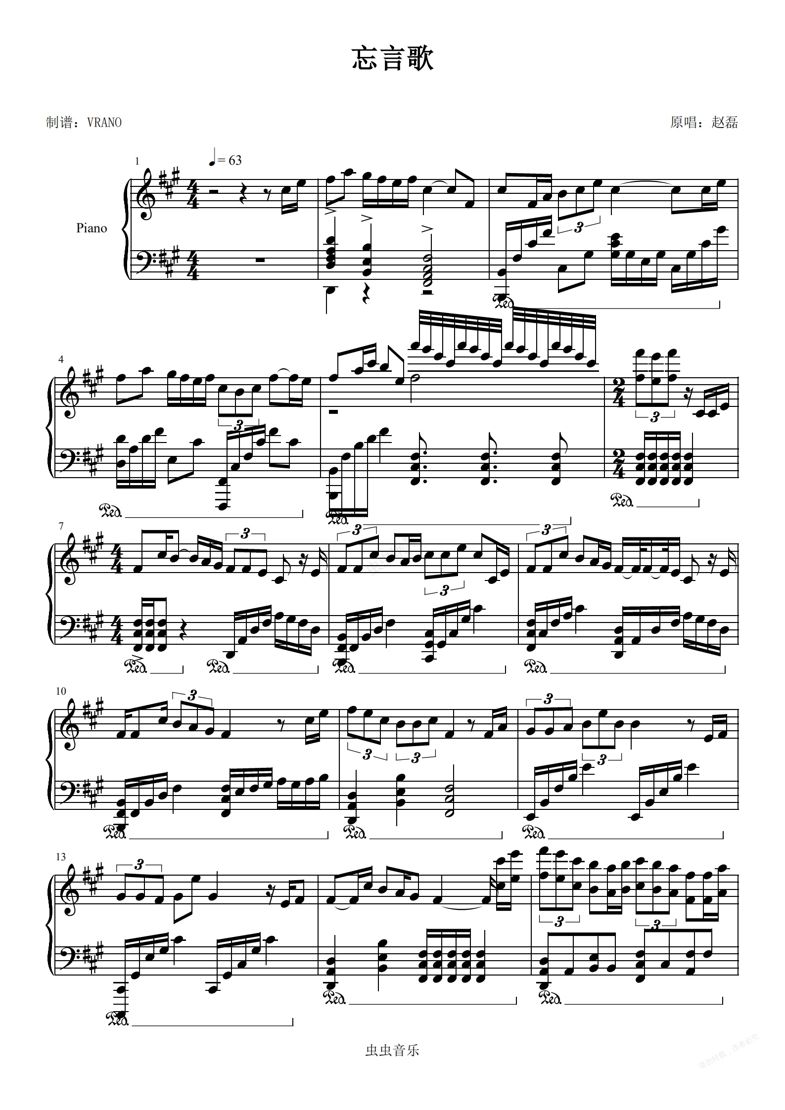 钢琴谱:忘言歌(《穿书自救指南》op)R1SE 赵磊
