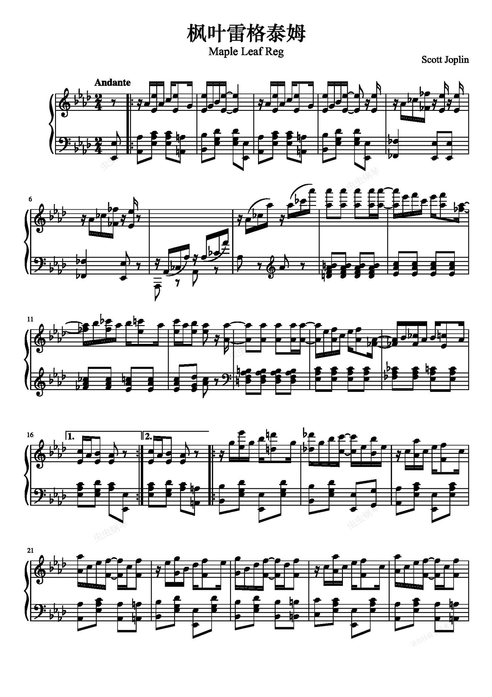 钢琴谱:枫叶雷格泰姆 - 斯科特·乔普林 (Maple Leaf Rag - Scott Joplin)