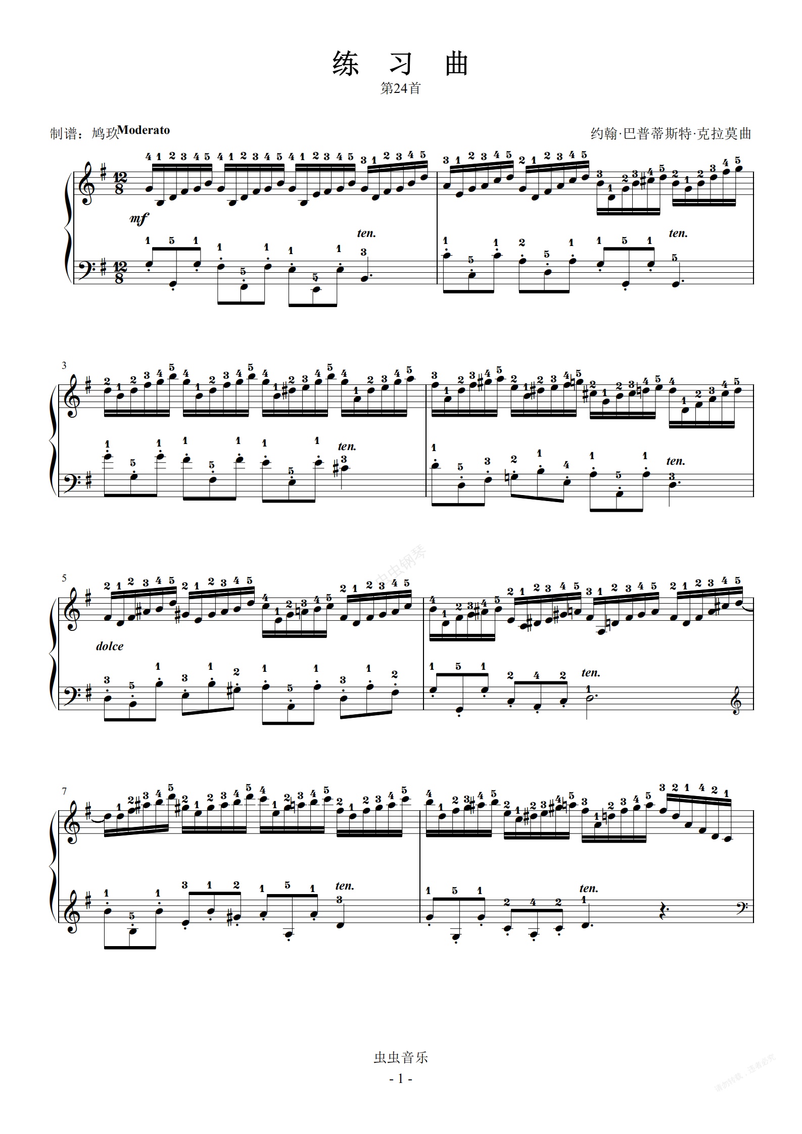 钢琴谱:克拉莫练习曲第24首(上音八级)