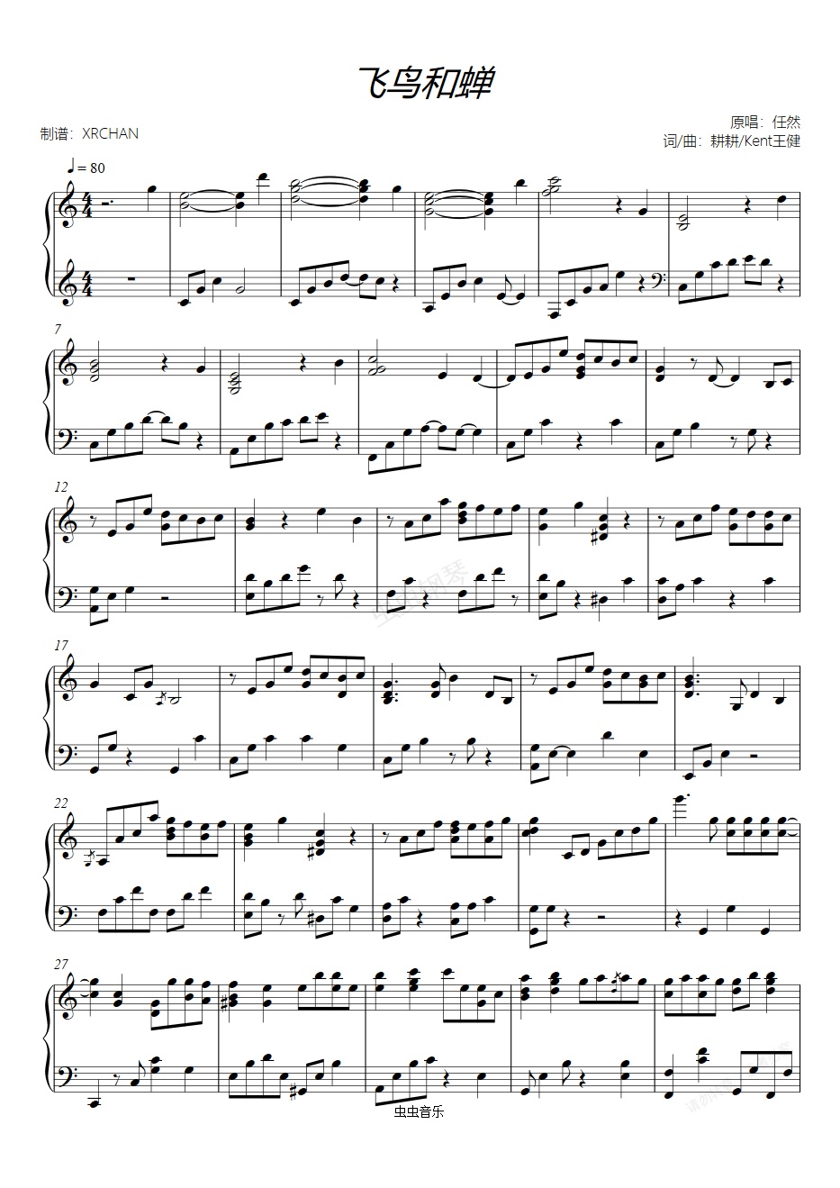 钢琴谱:飞鸟和蝉 C调 初级