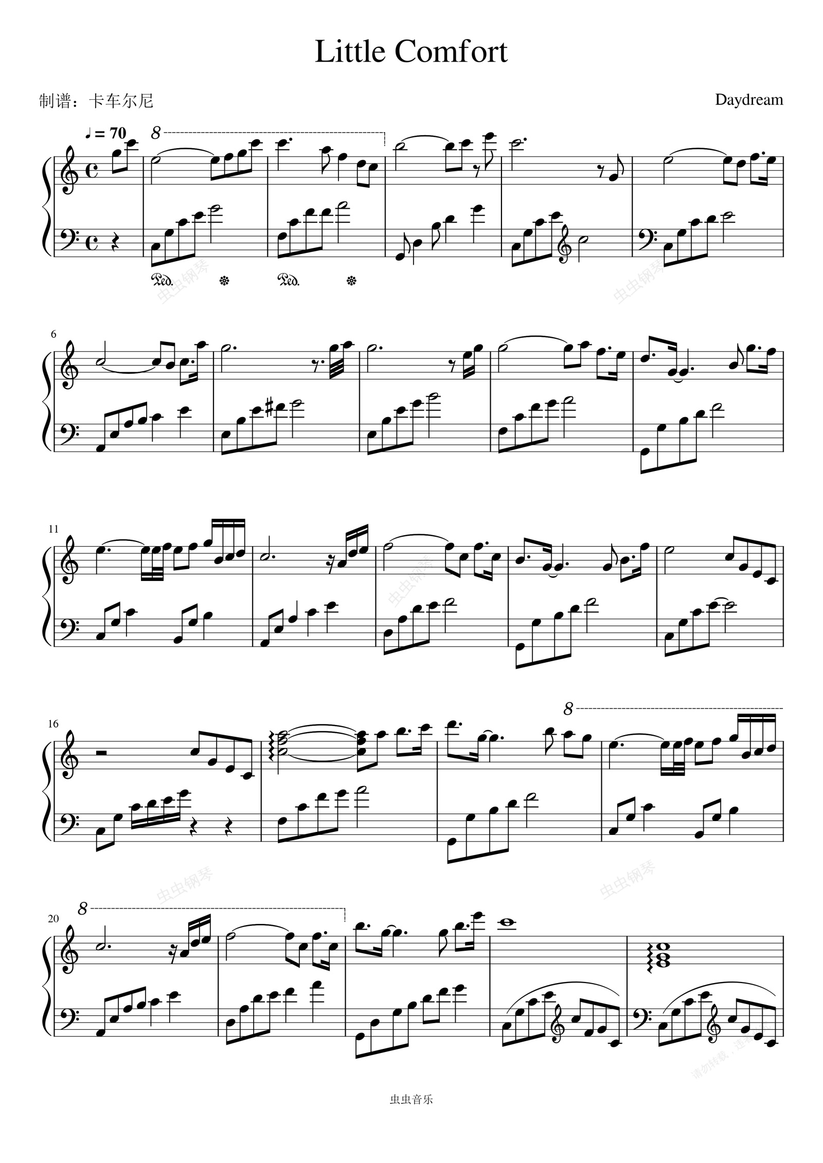 钢琴谱:Little Comfort白日梦游 C大调简单唯美版