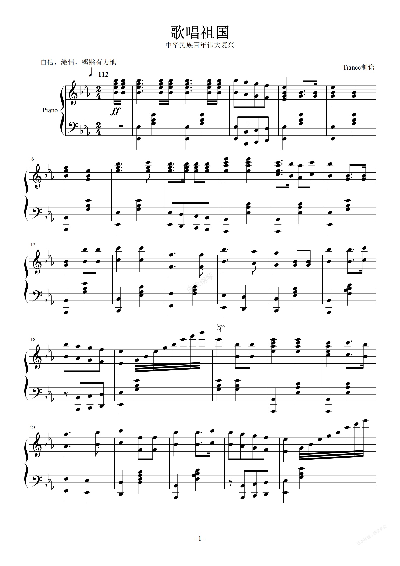 钢琴谱:《歌唱祖国》大气恢宏演奏版,740难度