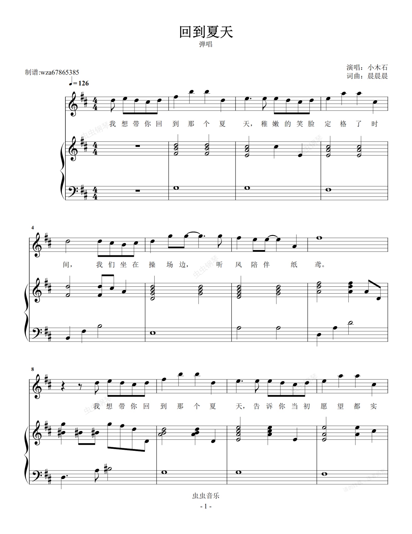 钢琴谱:回到夏天 小木石 弹唱