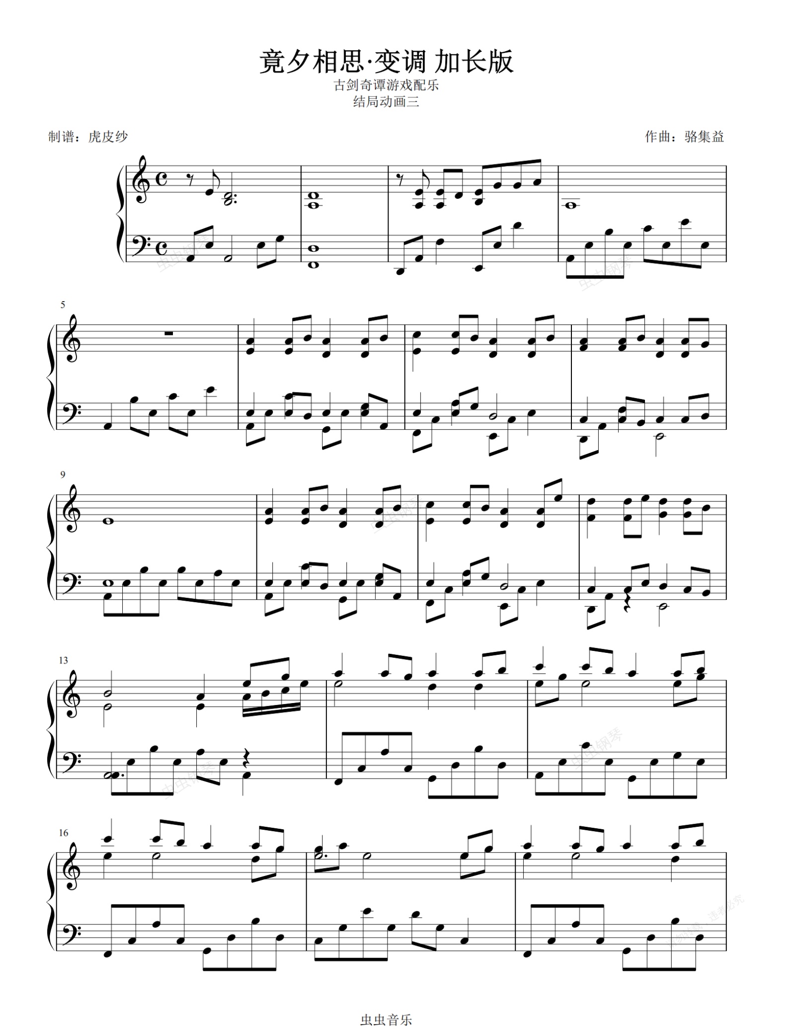 钢琴谱:古剑奇谭 竟夕相思·变调(加长版)