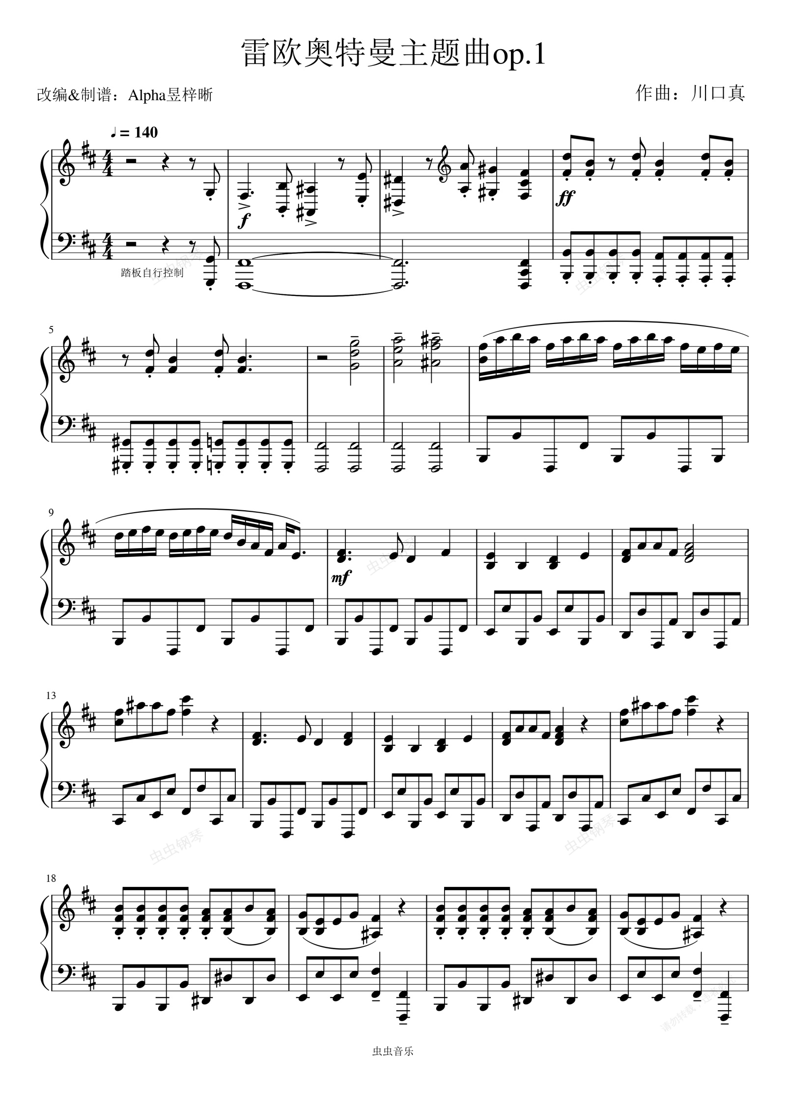 钢琴谱:雷欧奥特曼主题曲op.1钢琴版