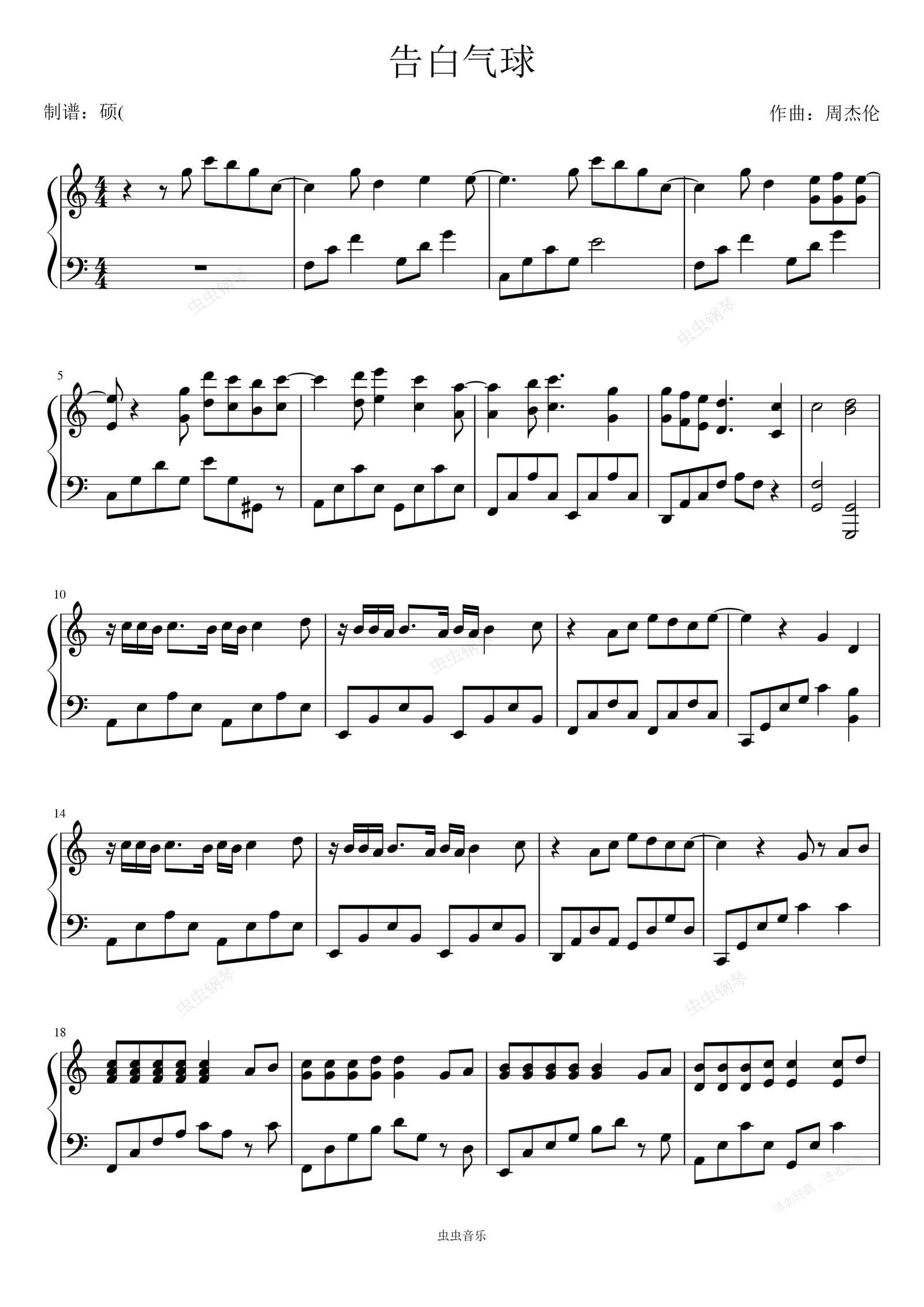 钢琴谱:告白气球
