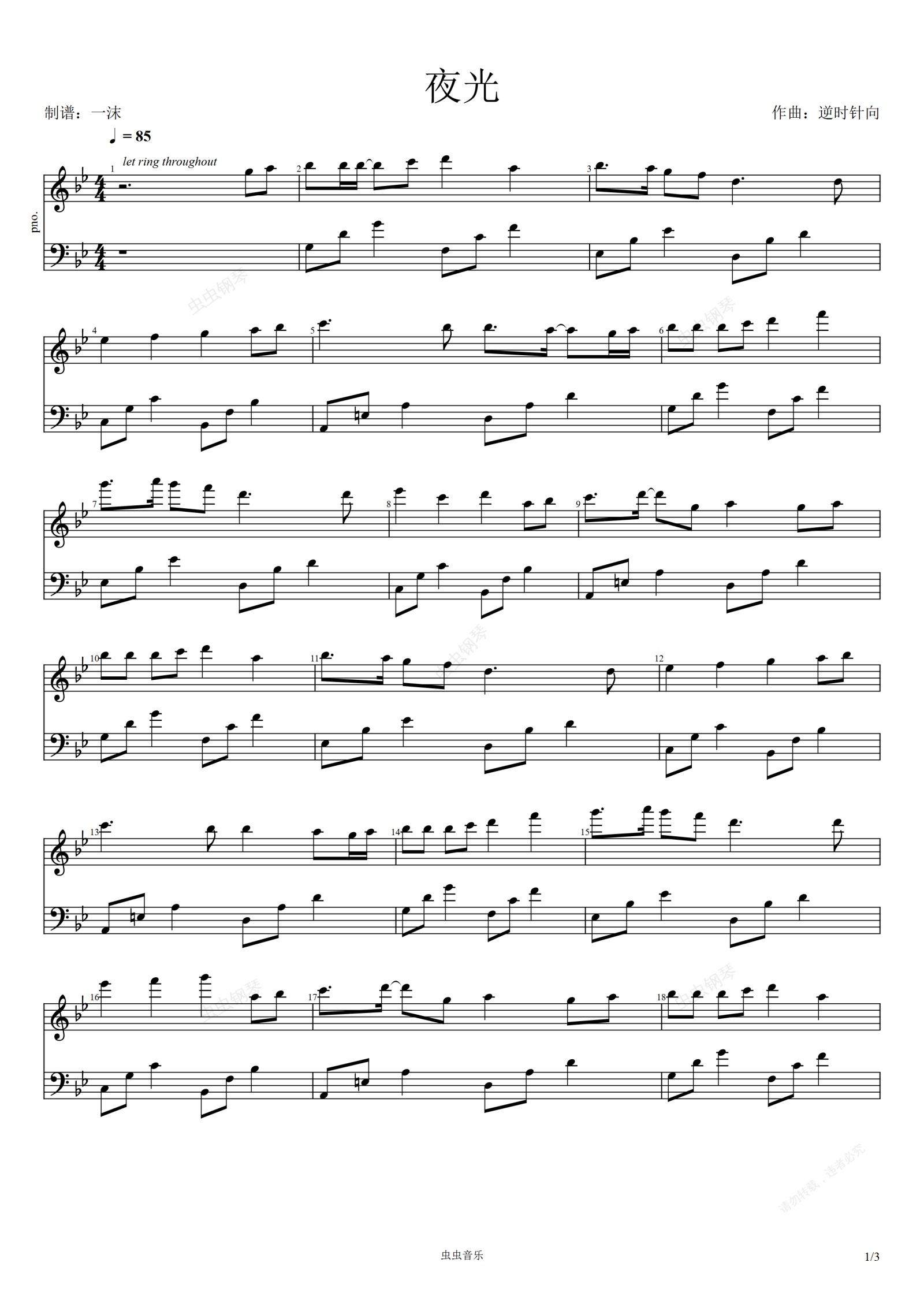 钢琴谱:逆时针向-夜光(钢琴独奏)