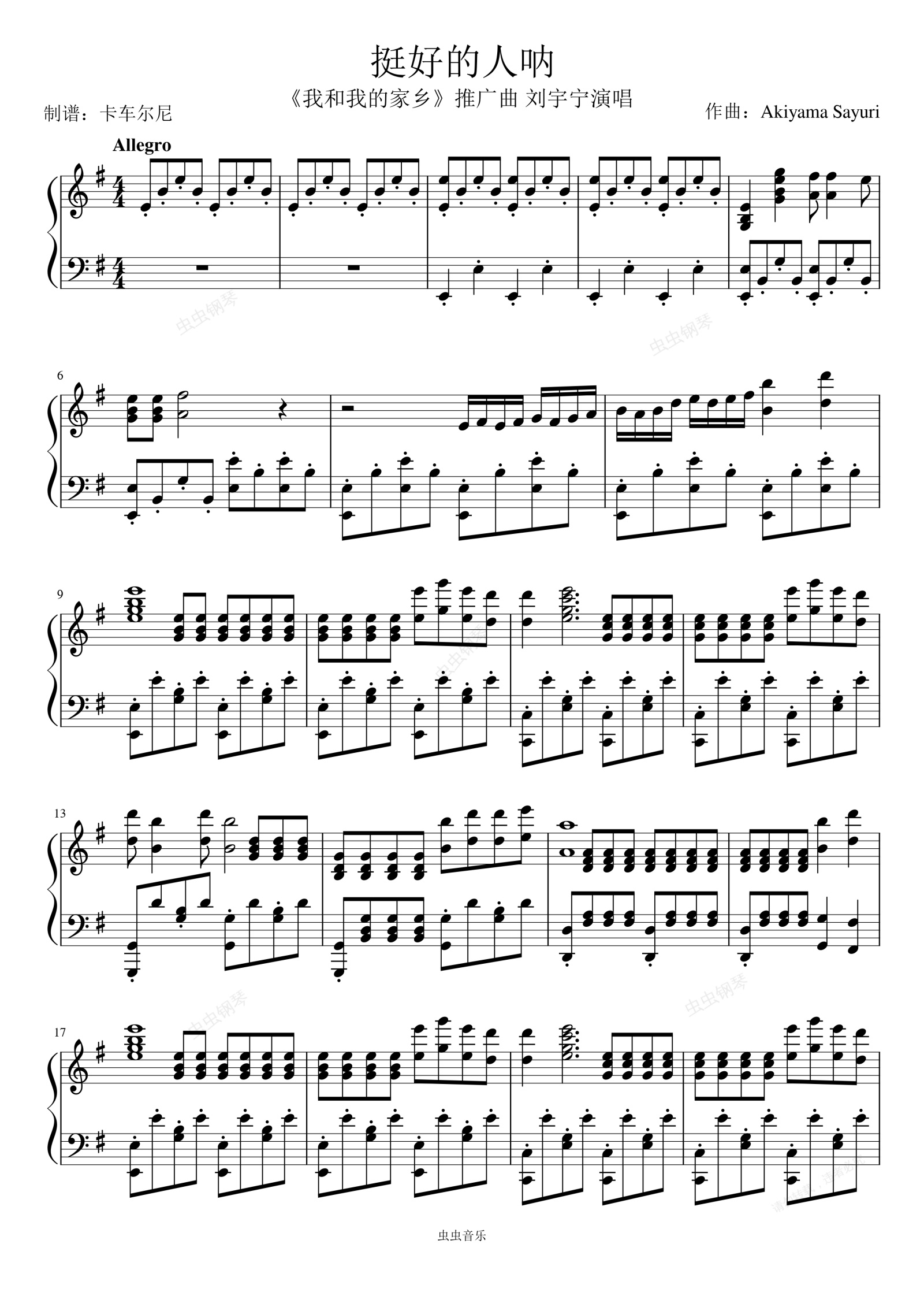 钢琴谱:《我和我的家乡》推广曲 挺好个人呐 摩登兄弟刘宇宁演唱