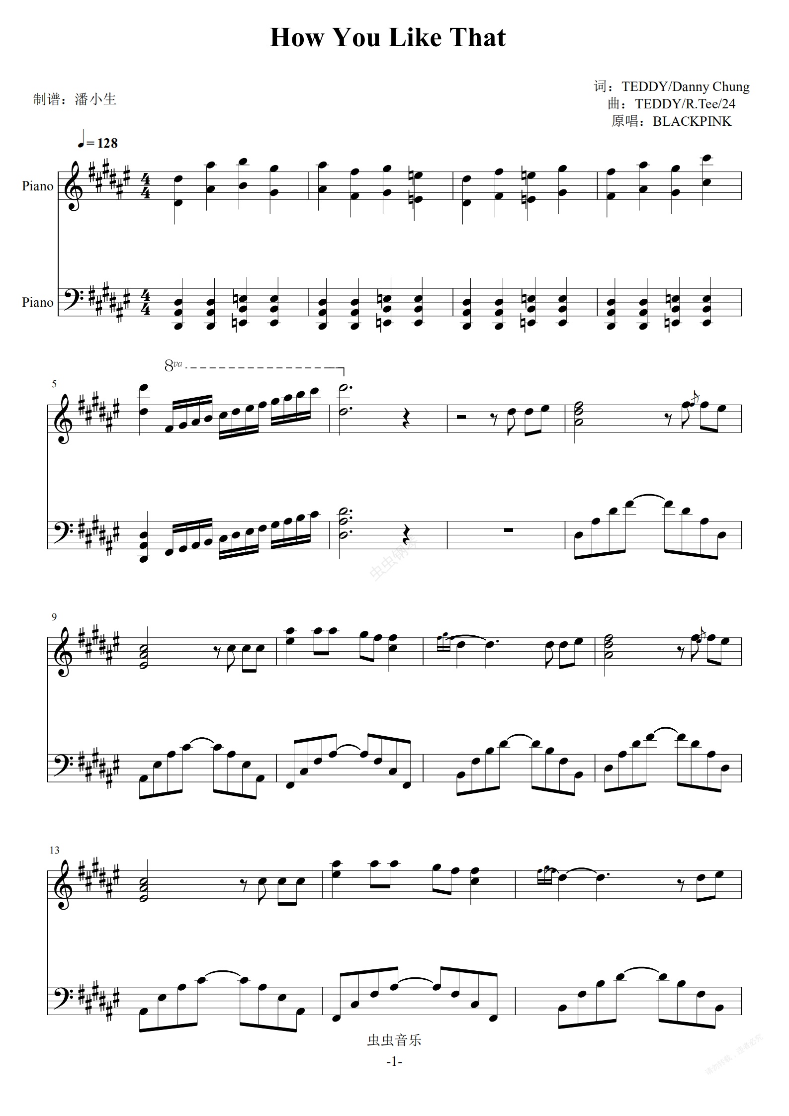 钢琴谱:How You Like That 原调 华丽 独奏版 Blackpink 升F大调