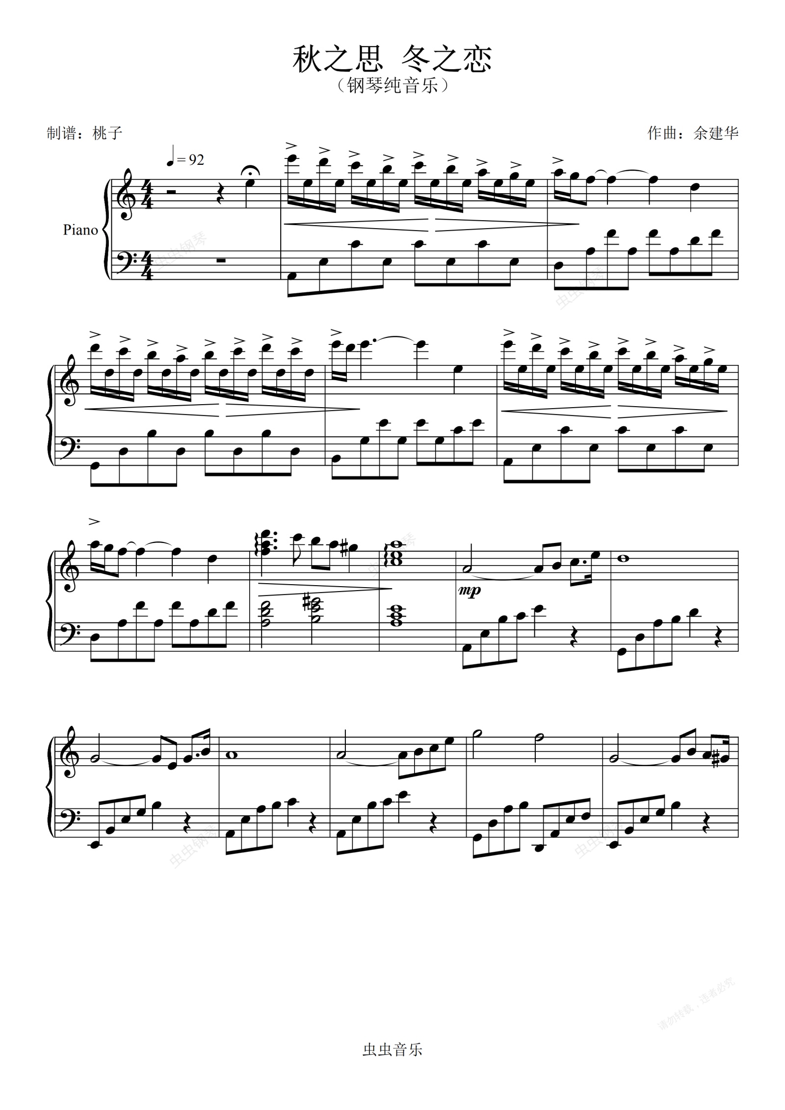 钢琴谱:秋之思 冬之恋-余建华 C调完美版
