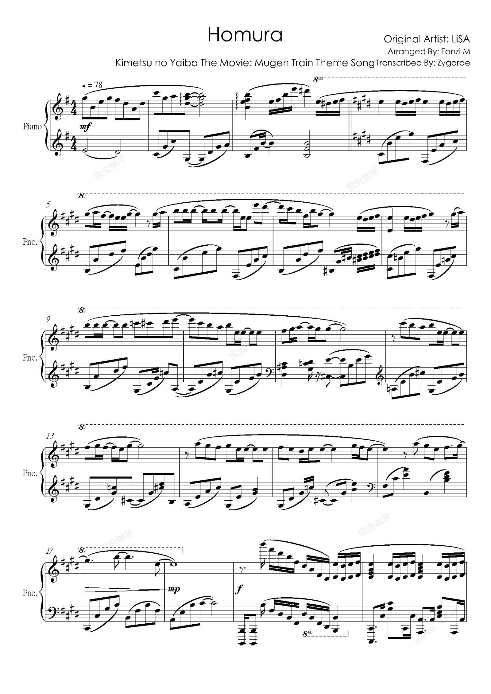 钢琴谱:【鬼灭之刃电影版无限列车篇】 - 炎