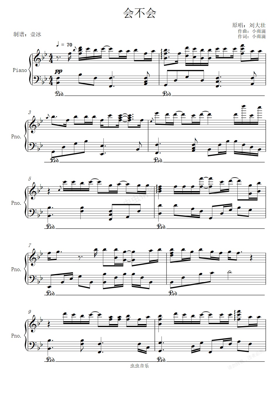 钢琴谱:会不会//刘大壮-壹冰钢琴版
