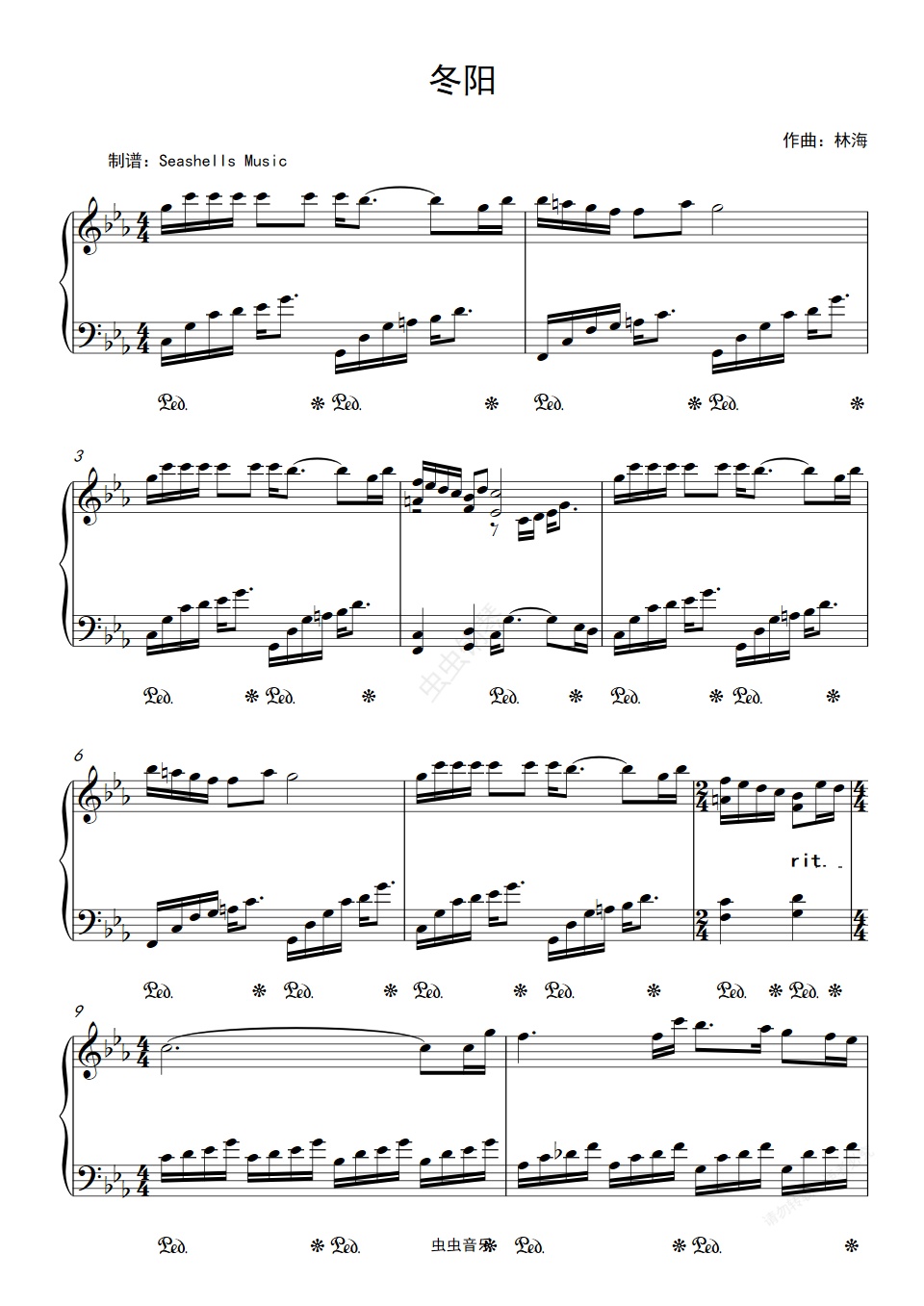 钢琴谱:林海-《冬阳》钢琴独奏谱