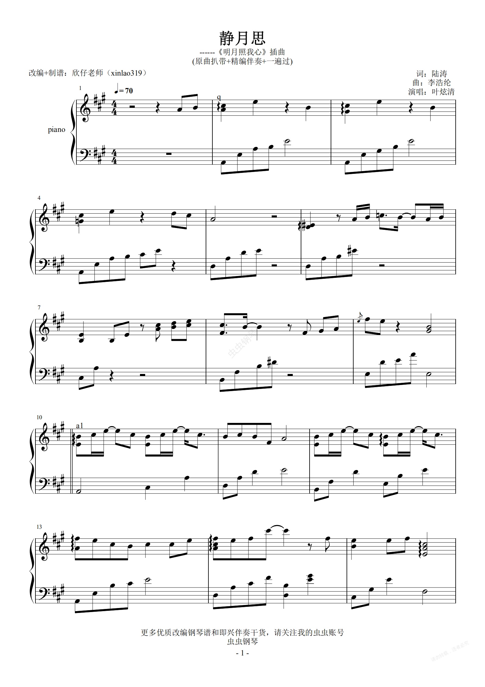 钢琴谱:静月思(原版扒带+精编伴奏+一遍过)