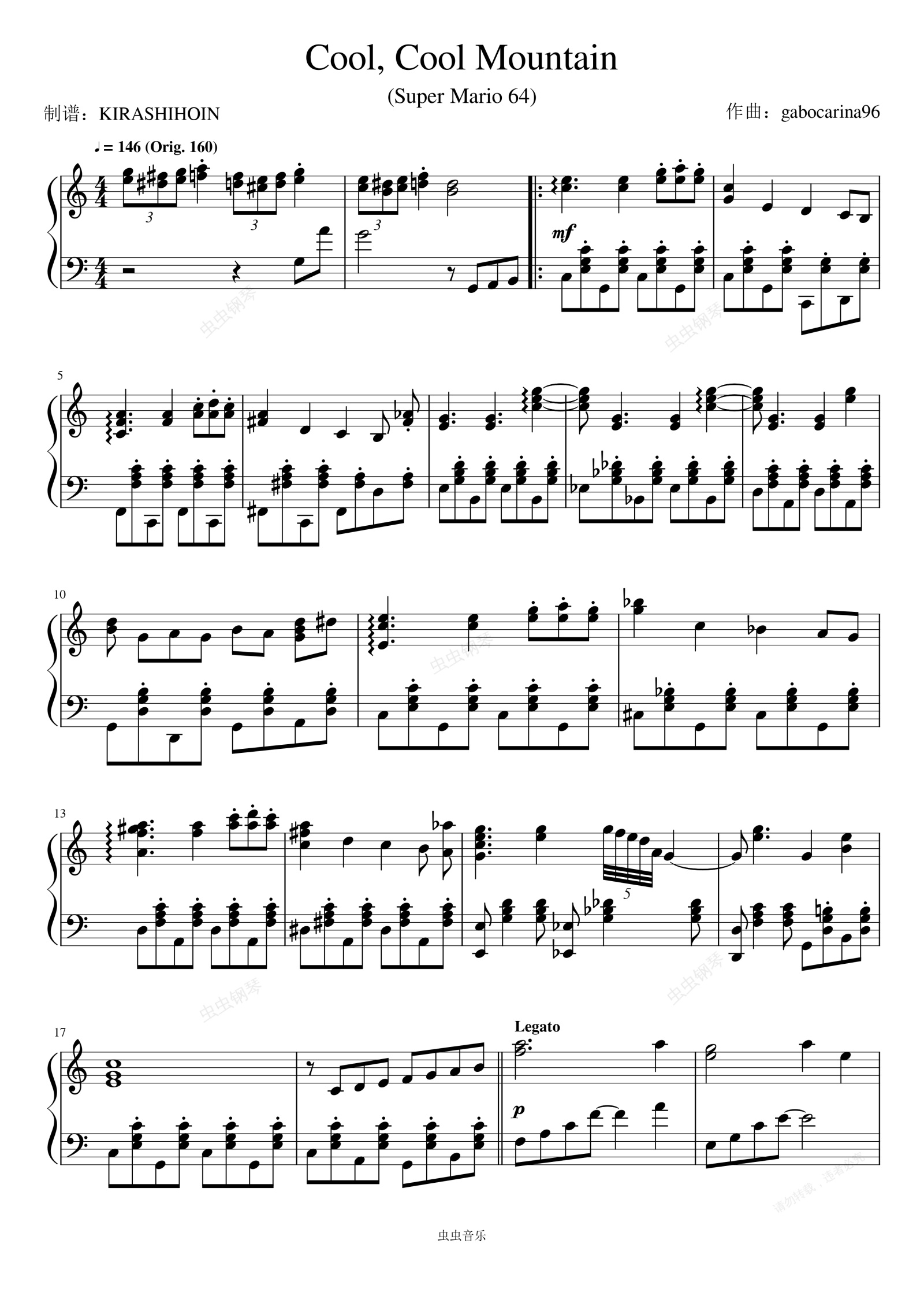 钢琴谱:超级马里奥64音乐/Cool, Cool Mountain(Super Mario 64)