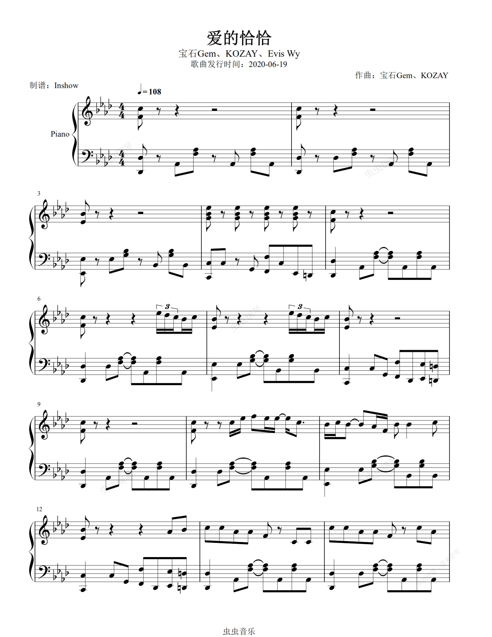 钢琴谱:宝石Gem - 爱的恰恰【独奏谱】