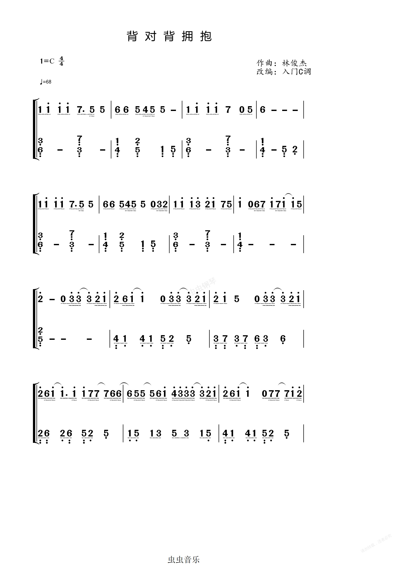 钢琴谱:林俊杰《背对背拥抱》入门版简谱