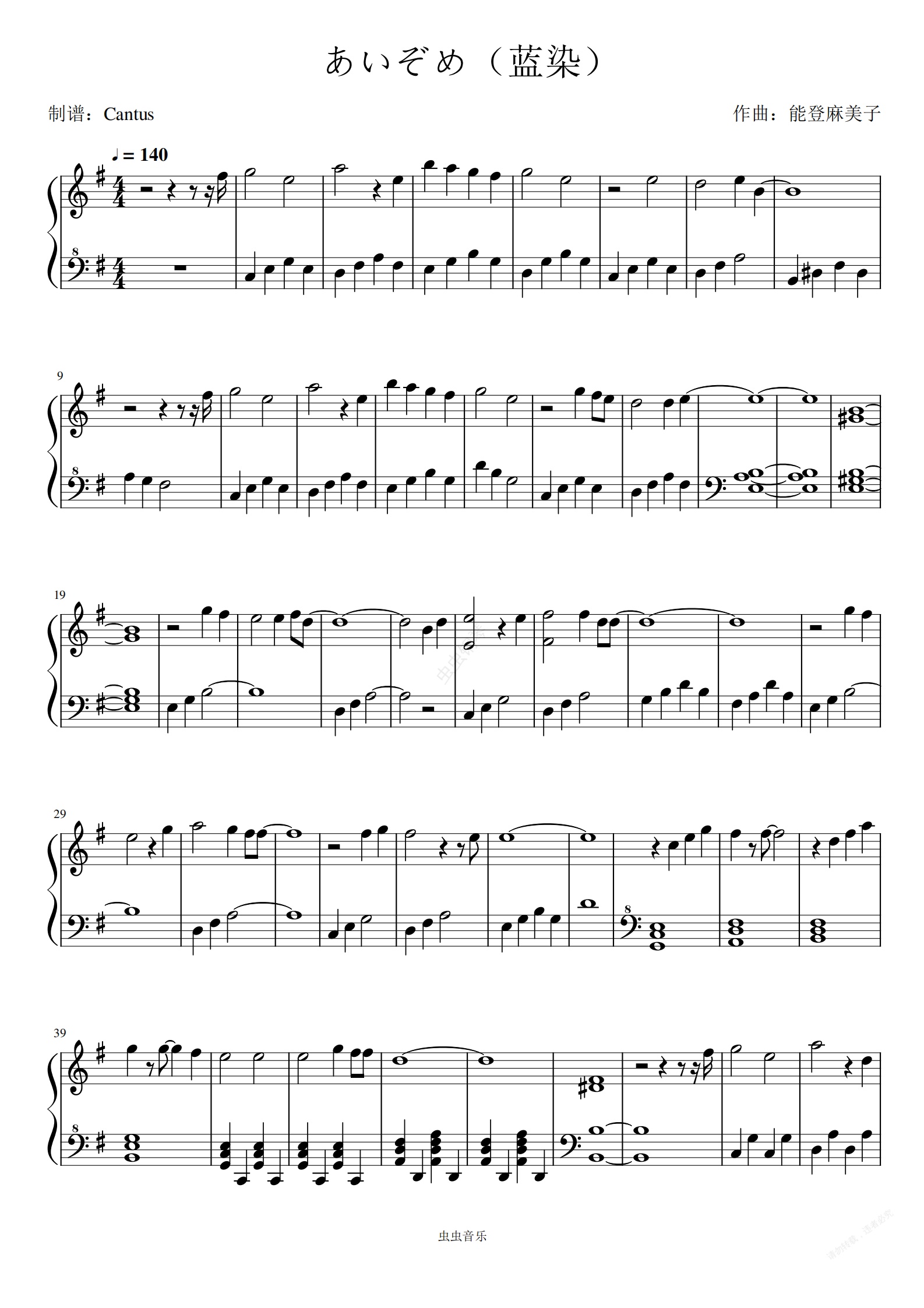 钢琴谱:蓝染-地狱少女
