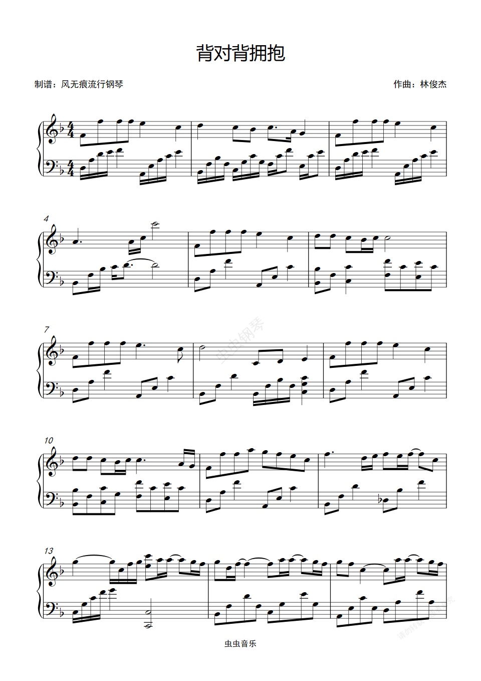 钢琴谱:背对背拥抱-林俊杰〖简易动听〗