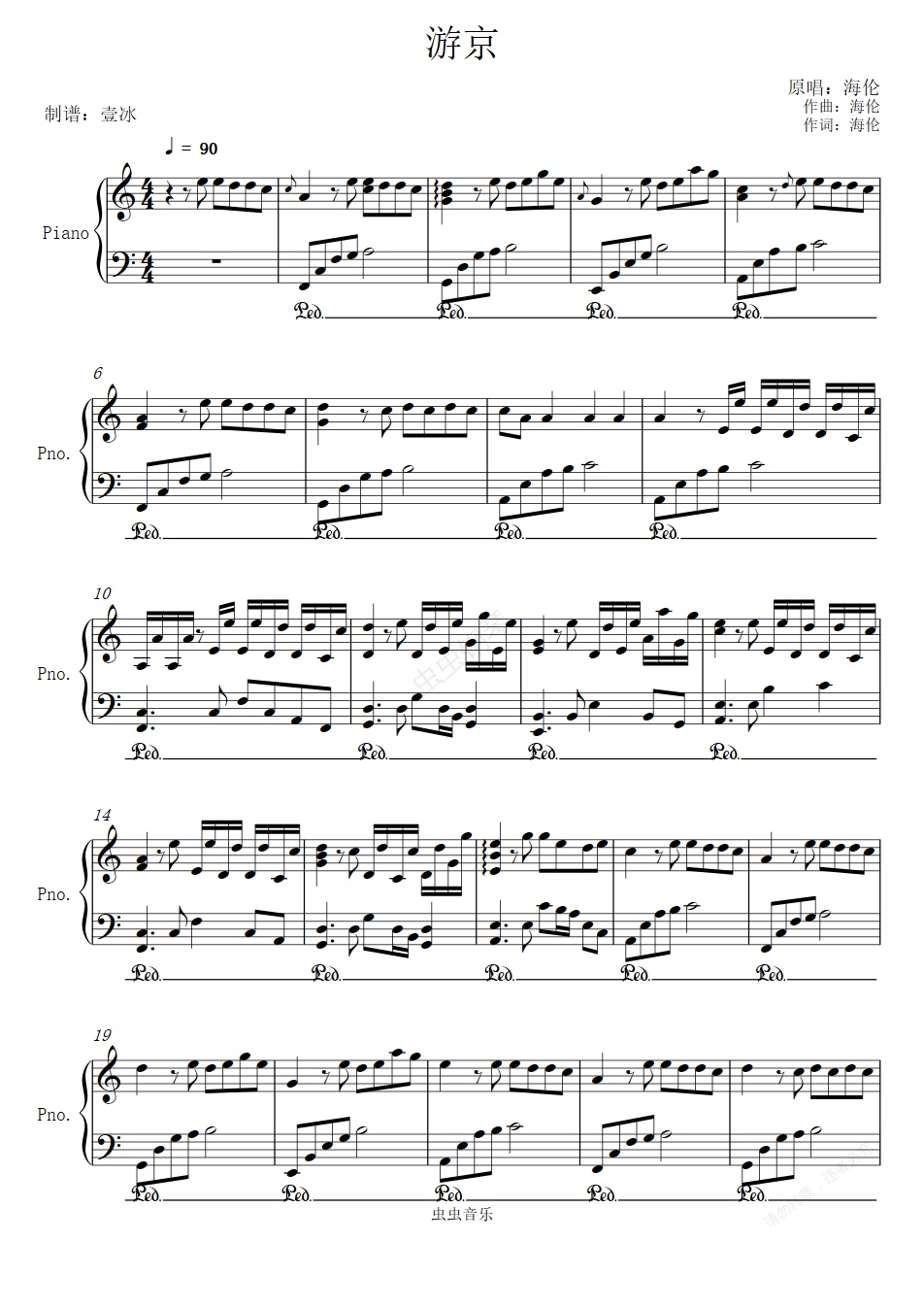 钢琴谱:游京-壹冰钢琴版