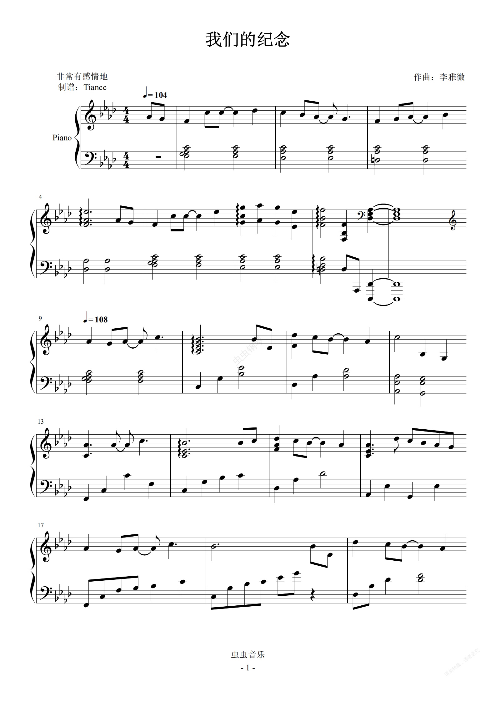 钢琴谱:《我们的纪念》完美可弹谱!放羊的星星主题曲