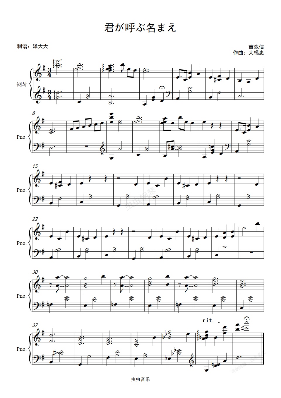 钢琴谱:君が呼ぶ名まえ~もう一度だけ【钢琴独奏版】TV动画《夏目友人帐 参・肆 音楽集》