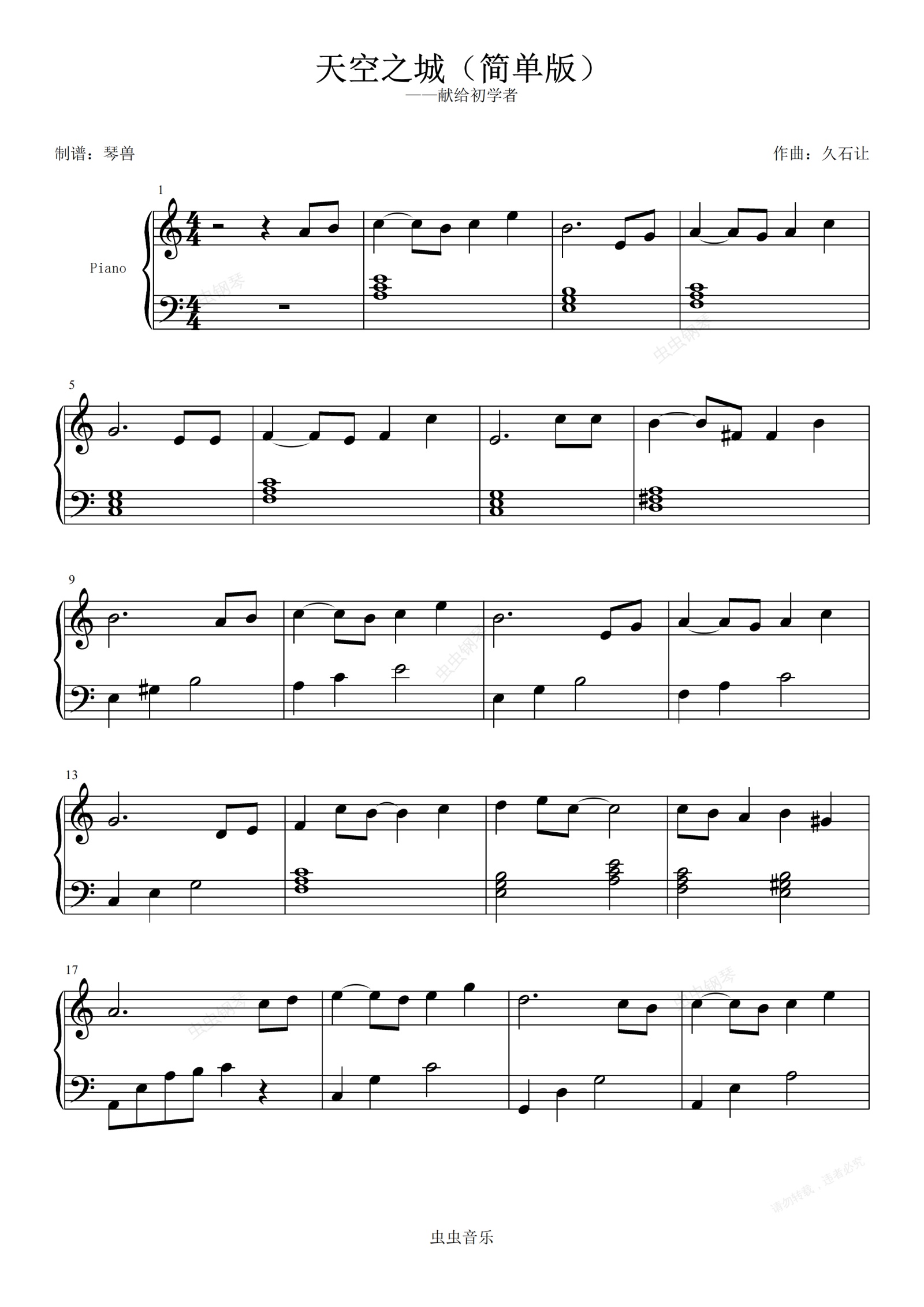 钢琴谱:天空之城-久石让 琴兽C调简单版