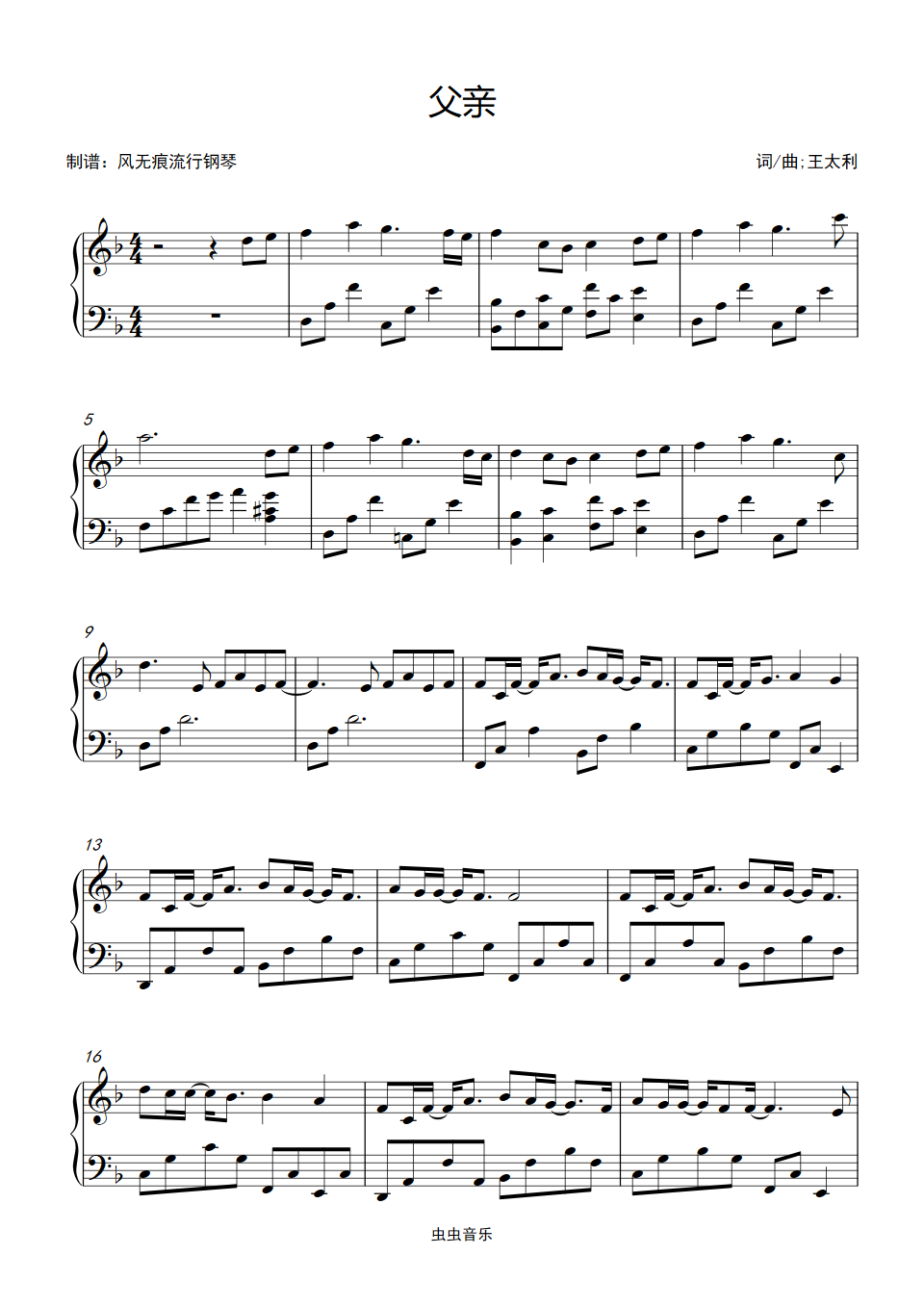 钢琴谱:父亲-筷子兄弟〖简易动听〗