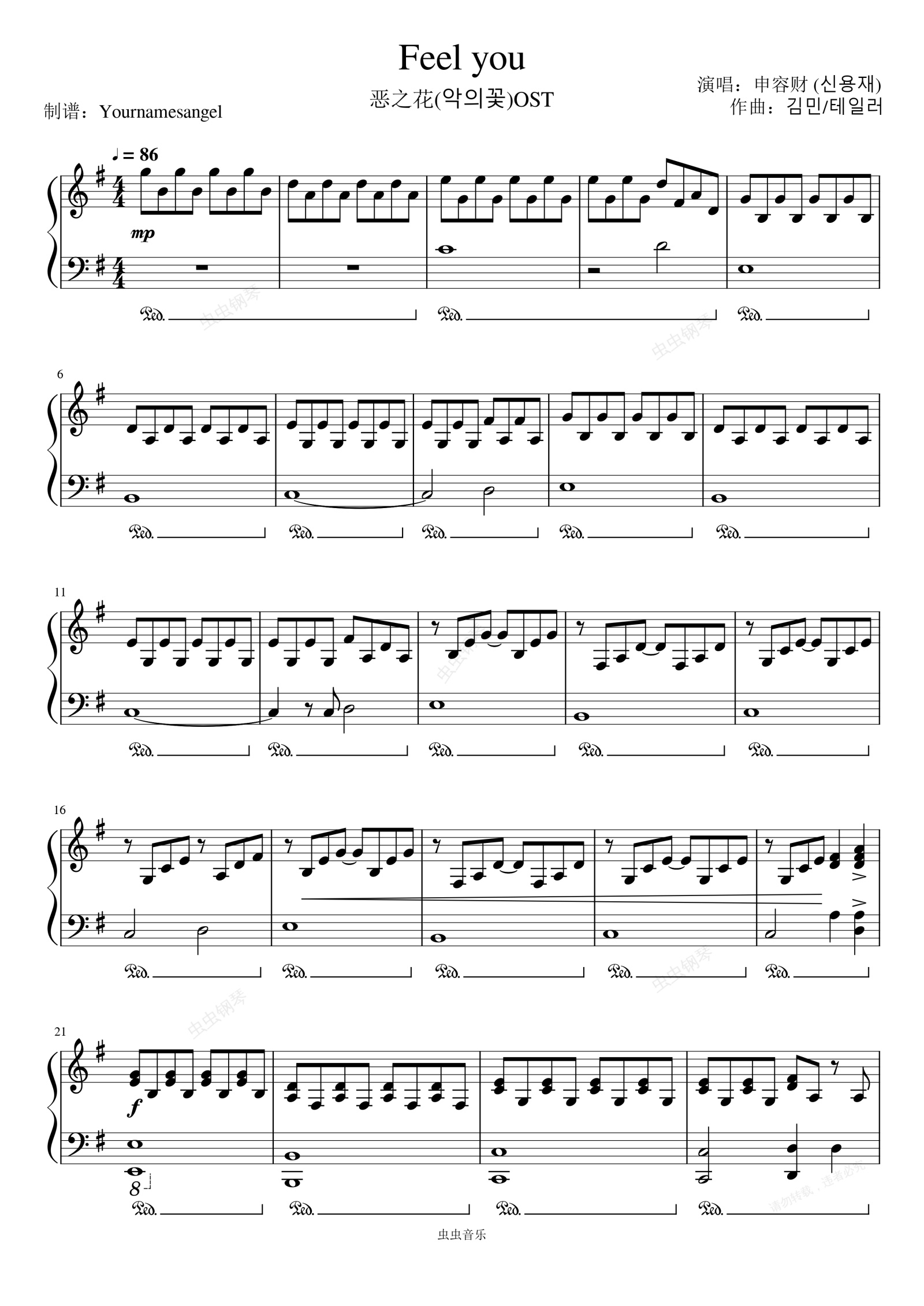 钢琴谱:Feel You 恶之花OST 原版钢琴伴奏谱
