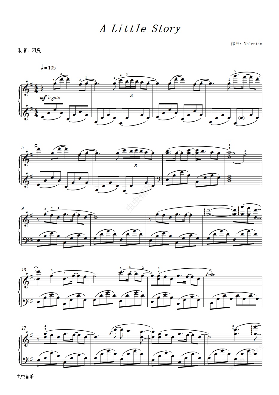钢琴谱:A Little Story - 带指法原版复刻 - 抖音热门