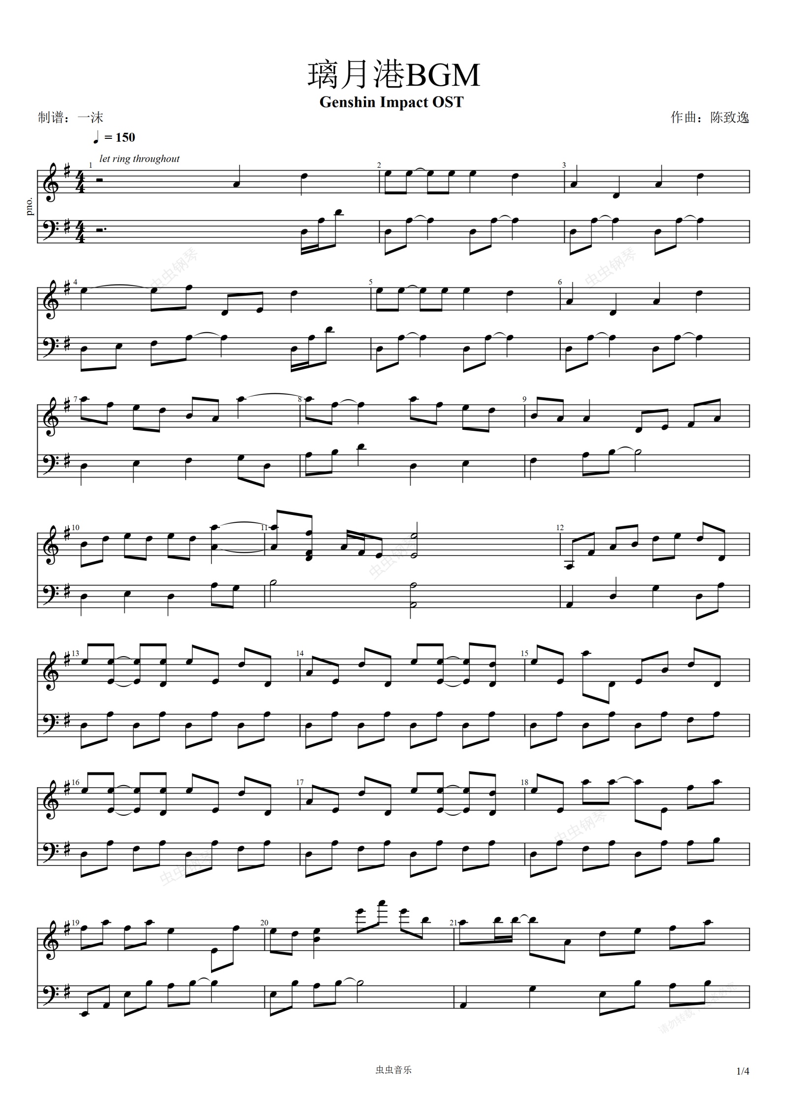 钢琴谱:原神-璃月港BGM 钢琴独奏 杯中明月